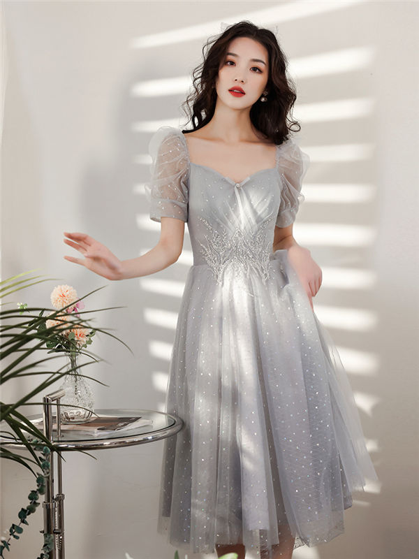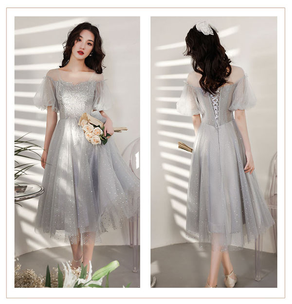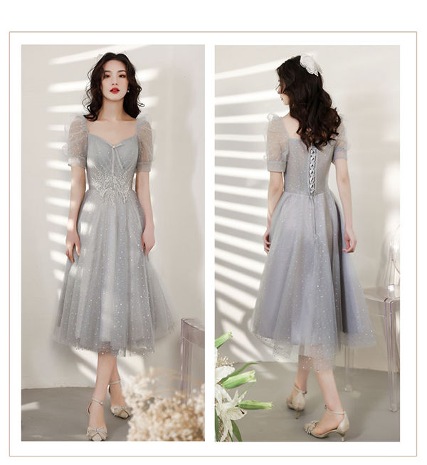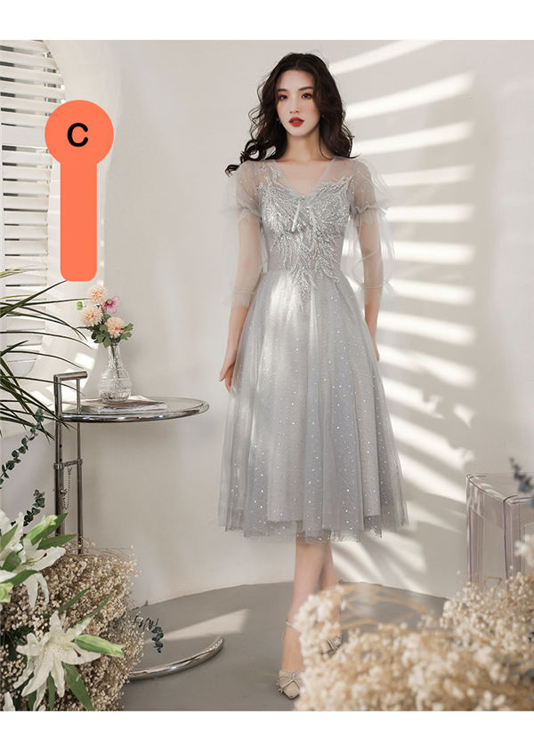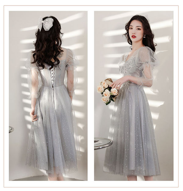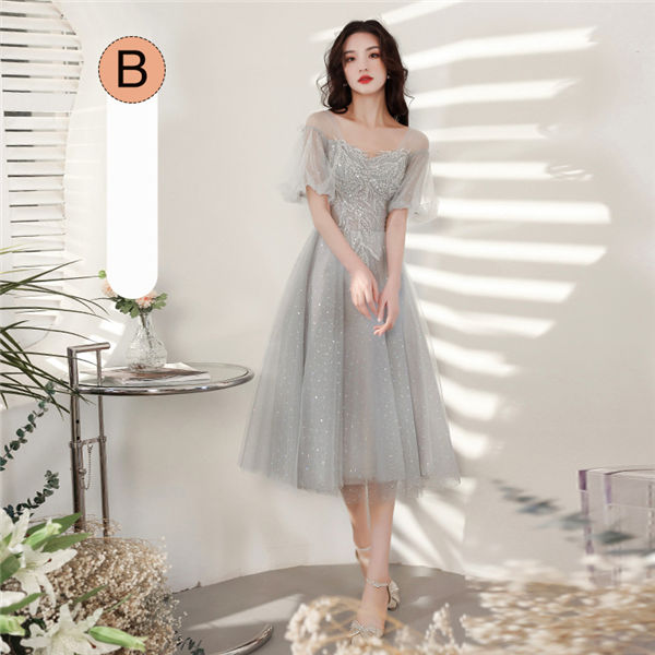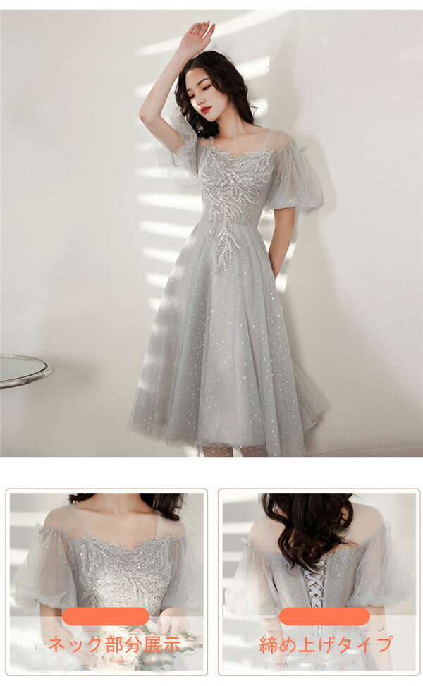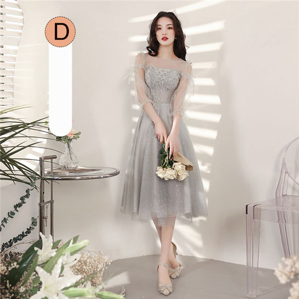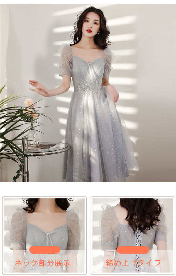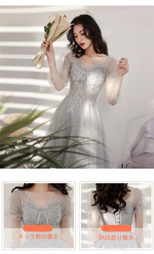 ★500円OFFクーポン配布中★ミモレドレス ドレス 大人 ピアノ 発表会 グレー ミモレ丈 パーティードレス フォーマルワンピース 体型カバー 結婚式 成人式 同窓会 演奏会 二次会 忘年会 上品 お呼ばれ 20代 30代 40代 大人可愛い S M L 2L 3L