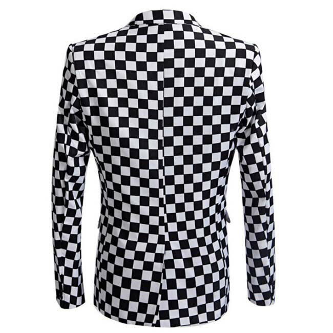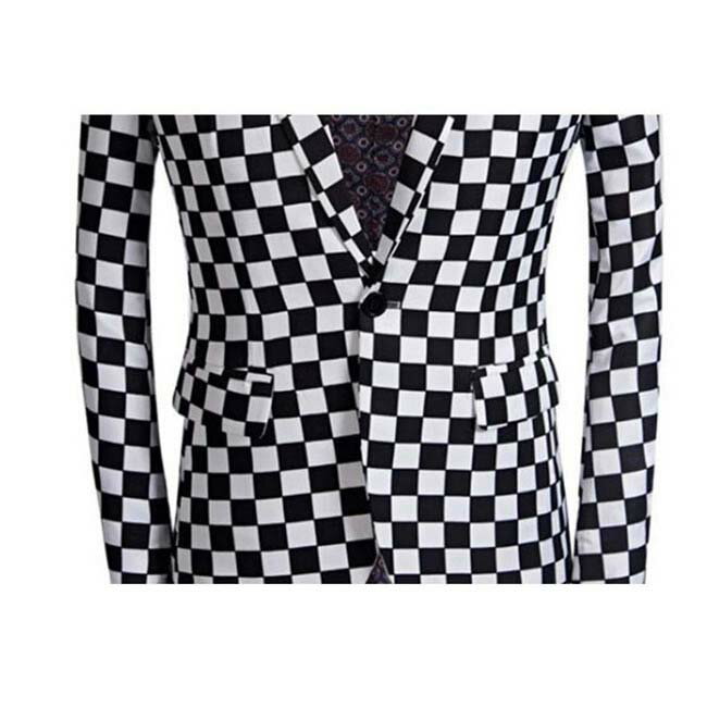 ステージ衣装 メンズ スーツ 上下2点セット 男性用 黒白 市松模様 格子柄 パンツスーツ 忘年会 新年会 ダンス衣装 カラオケ 舞台衣装 記念撮影 ハロウィン 衣装