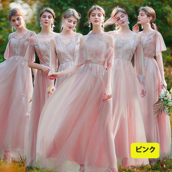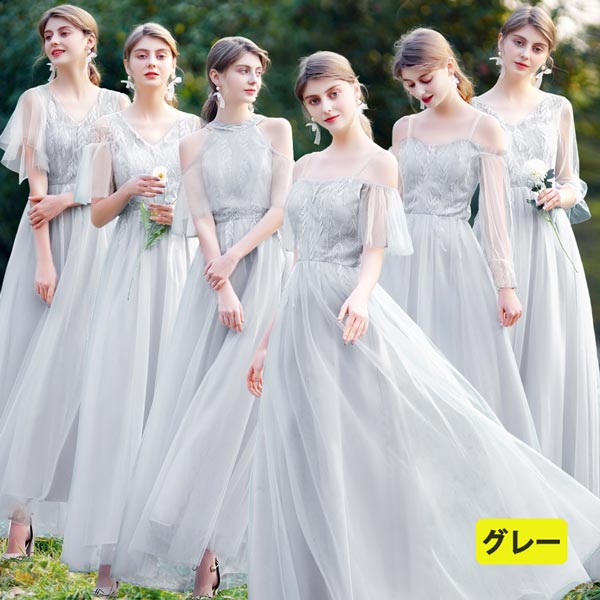 ドレス 6タイプ パーティードレス レディース ブライドメイドドレス 水色 ロング丈 ミモレ丈 グレー ピンク 結婚式 花嫁 二次会 ハワイ 結婚式 リゾートワンピ 披露宴ドレス 大きいサイズ お呼ばれ dress 上品