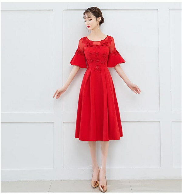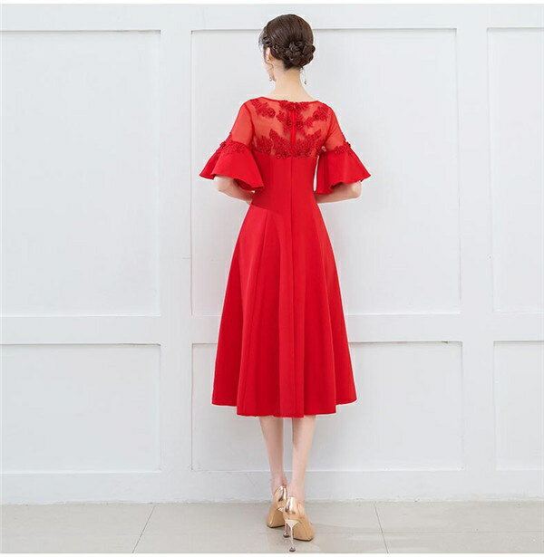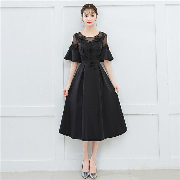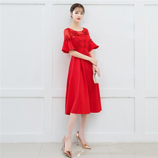 ★500円OFFクーポン配布中★ミモレドレス 演奏会 着痩せ パーティードレス レディース ミモレ丈 ドレス 結婚式 ワンピース フォーマル ドレス お呼ばれ 二次会 ピアノ 発表会 ドレス 演奏会 袖あり フォーマル ワンピース 大人 大きいサイズ ブラック レッド 黒