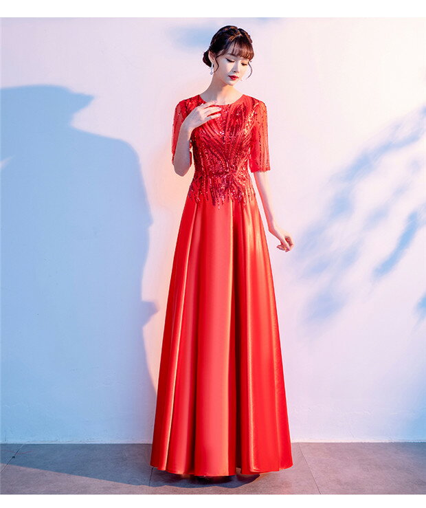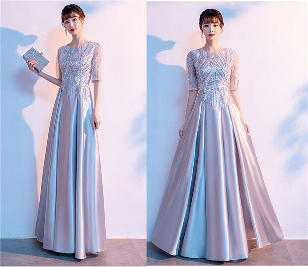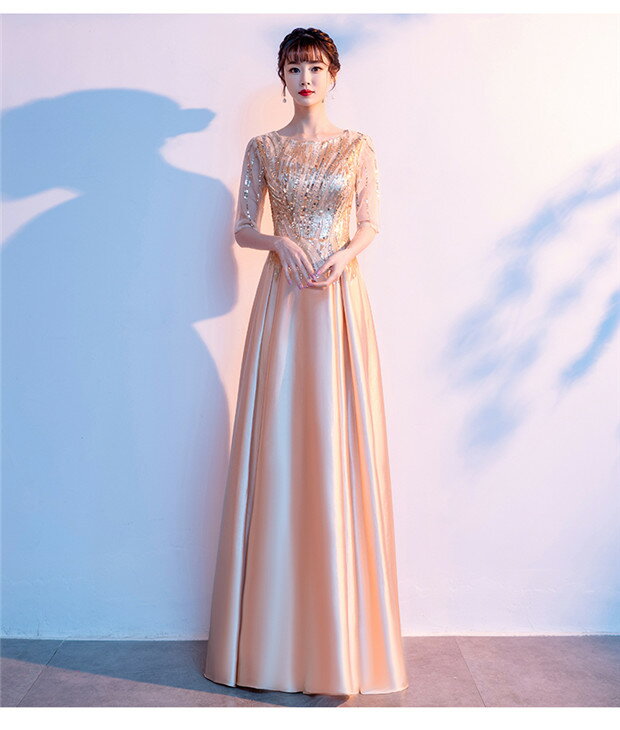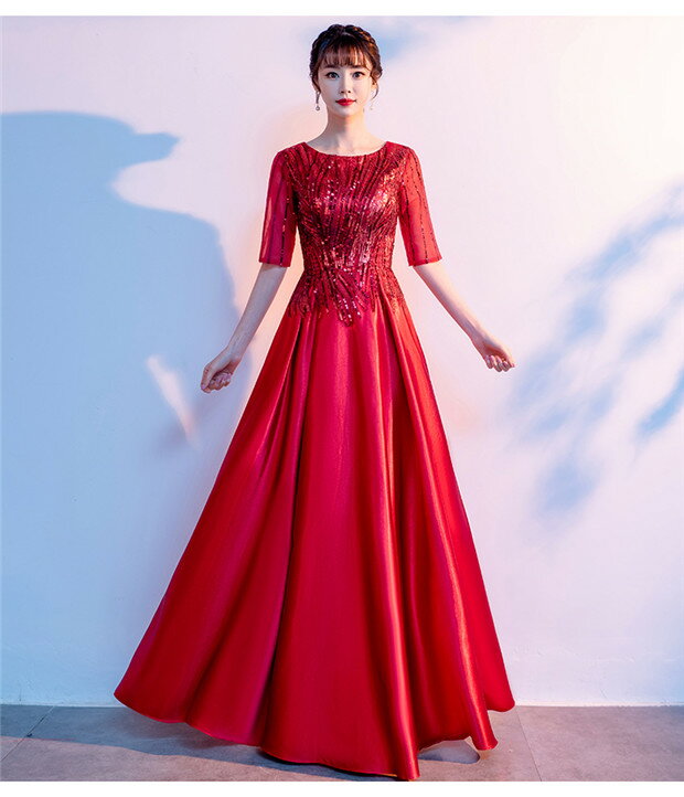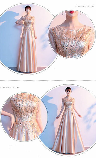 ★500円OFFクーポン配布中★パーティードレス ロングドレス 演奏会 袖あり ドレス ラウンドネック 成人式 同窓会 カラオケドレス 大人 ピアノ 発表会 Aライン 結婚式 ステージドレス 二次会 母親 ウエディング ハワイ 上品 20代 30代 40代