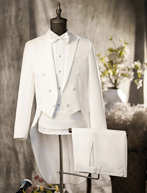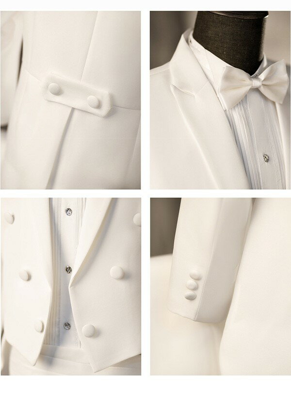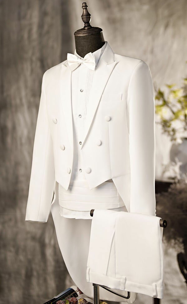 タキシード メンズ スーツ フォーマル 結婚式 燕尾服 演奏会 舞台 イブニングコート 紳士服 男性 ビジネス メンズスーツ リボン付き ステージ ステージ 合唱団 演出 発表会 ホワイト ブラック S M L 2L 3L 4L