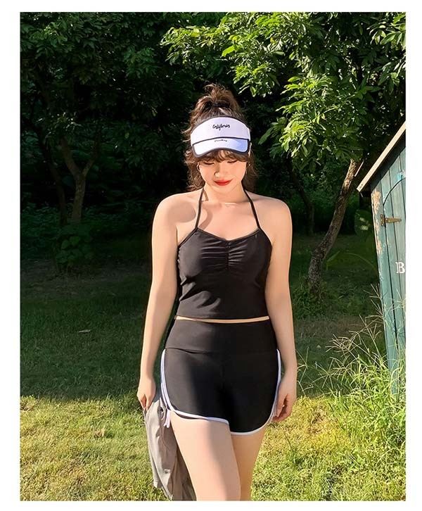 水着 大きいサイズ 3点セット ぽっちゃり 女性 セパレート 体型カバー 大きいサイズ ラッシュガード ミセス ママ水着 ショートパンツ スイミング ジム 20代 30代 40代 2L 3L 4L 5L 6L ブラック レッド