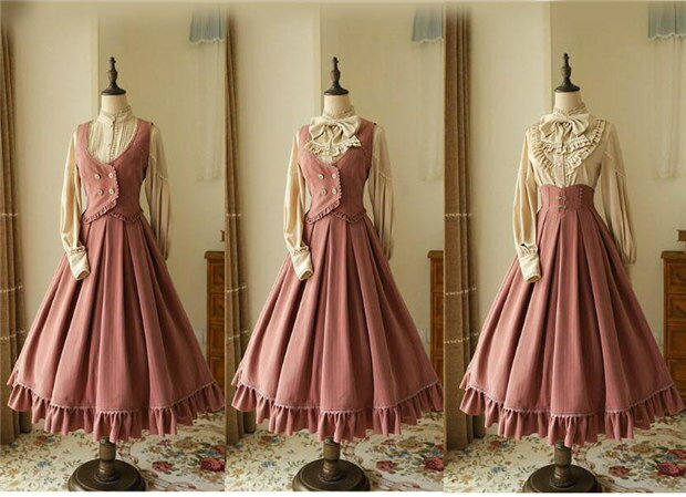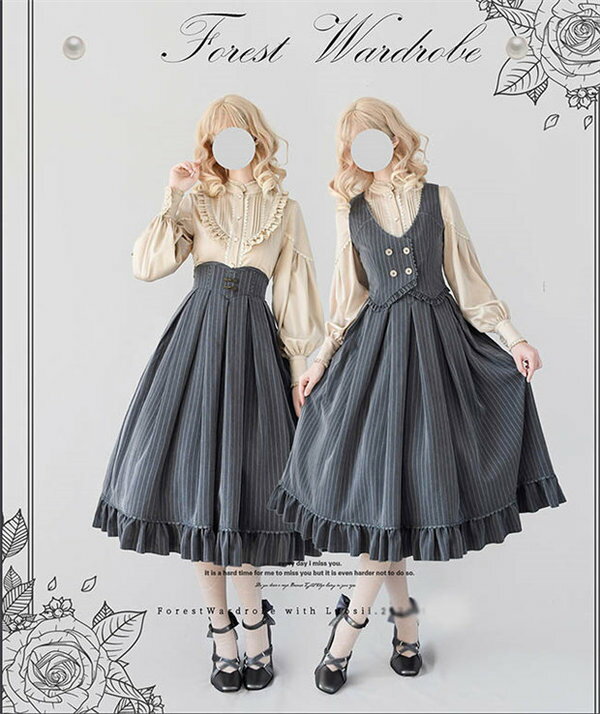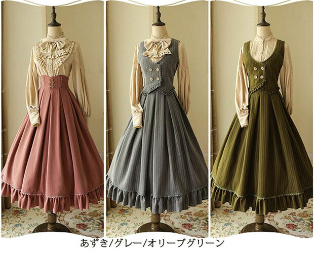 ロリータ スカート レディース ロング ジャンスカ lolita cla フレアスカート ベスト クラロリ レトロロングスカートドレス ロリータファッション