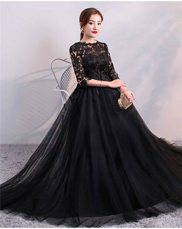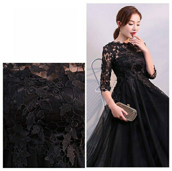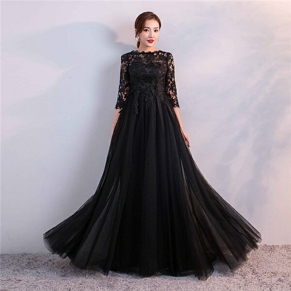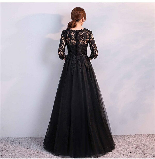 ★500円OFFクーポン配布中★ロングドレス 演奏会 パーティードレス ブラック 黒 袖あり レディース 結婚式 ワンピース フォーマル お呼ばれ 二次会 ピアノ 発表会 演奏会 袖あり 大人 ピアノ 発表会 演奏会用ドレス 大きいサイズ XS 6XL