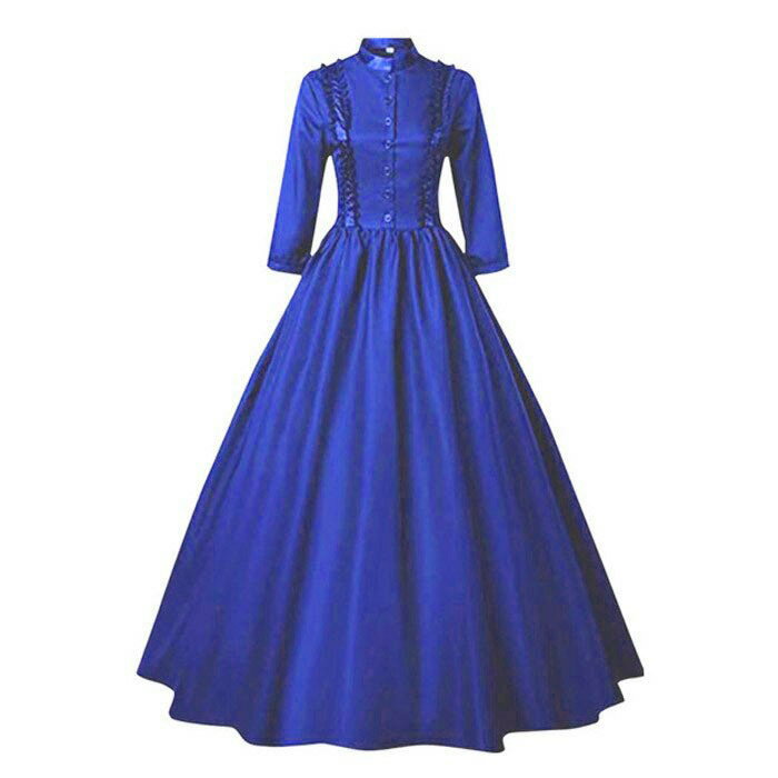 ドレス ロングドレス 宮廷服ドレス 中世ヨーロッパ ビクトリア フリル 学園祭 文化祭 ボリューム コスチューム ワンピース パーティードレス 衣装 コスプレ ハロウィン ブラウン ブルー S M L XL 2XL 3XL