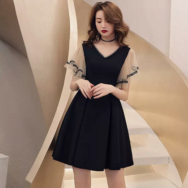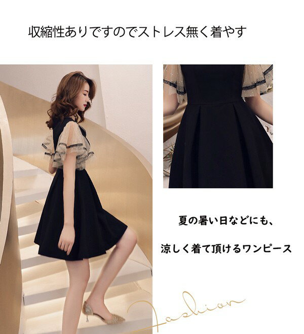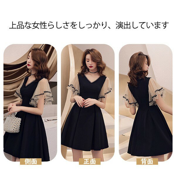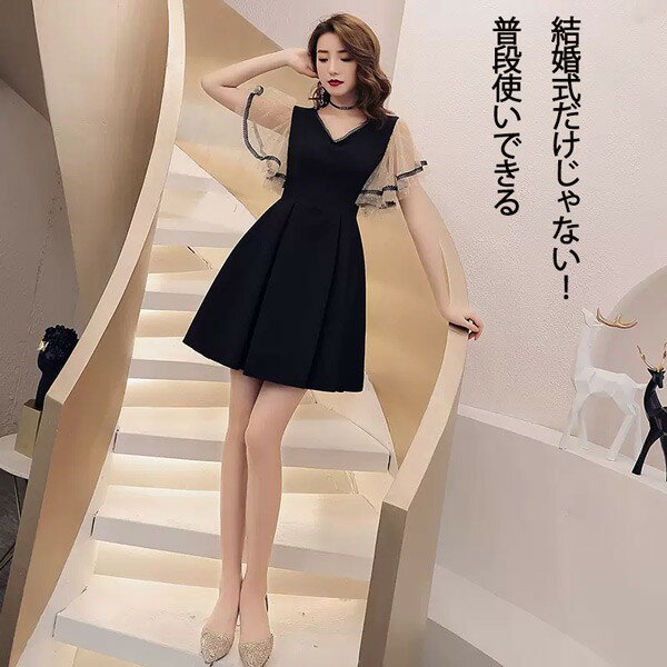 パーティードレス 結婚式 ミニワンピース ショートドレス フォーマル フレアスリーブ 半袖 シンプルワンピース 2次会 卒業式 同窓会 謝恩会 ショート丈 お呼ばれ ミニドレス