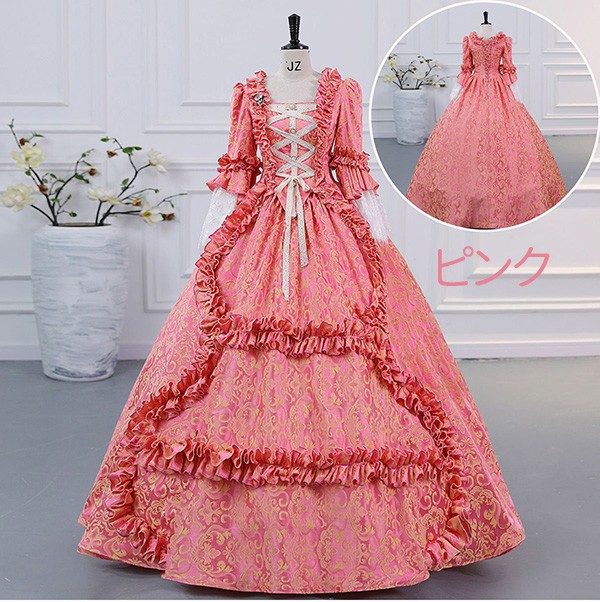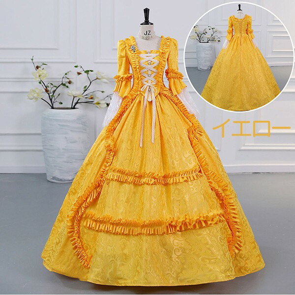 貴族 ドレス ステージ衣装 舞台衣装 オペラ声楽 中世貴族風 お姫様ドレス 宮廷 お嬢様 パーティー 中世 ドレス 貴族 衣装 演奏会用ロングドレス 大きいサイズ 貴族 ワンピース 刺繍 プリンセスライン フリル 長袖 ピンク イエロー グリーン 赤