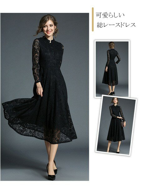 パーティードレス 結婚式 20代 ワンピース レース ドレス 大きいサイズ 卒業式 花柄 お呼ばれ 長袖 30代 40代 50代 体型カバー 小柄 フォーマルドレス 二次会 小さいサイズ 韓国 上品 着痩せ 春 夏 秋 S M L 2L 3L 4L 5L 6L