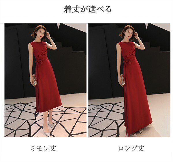 ★500円OFFクーポン配布中★着丈選択可 ロング ミモレ丈 ミモレ丈ドレス ノースリーブ ドレス ワインレッド 赤 母親 パーティードレス ワンピース フォーマルドレス イブニングドレス 20代 30代 40代 大きめ 親族 成人式 卒業式 同窓会 お呼ばれ 二次会 忘年会