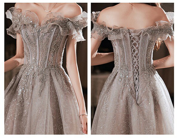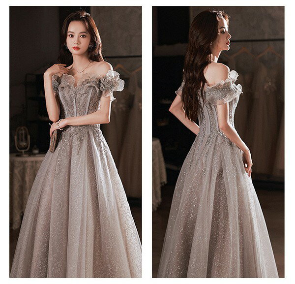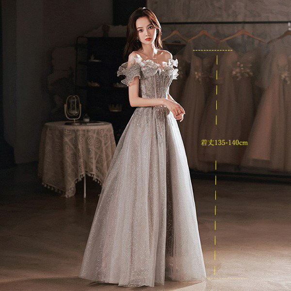 ★500円OFFクーポン配布中★パーテイードレス ロング丈ドレス レディース オフショルダー 肩出し キラキラ 着痩せ 発表会 演奏会 二次会 大きいサイズ エレガント 20代 30代 40代 大人 可愛い 結婚式 披露宴 フォーマルドレス ブラック