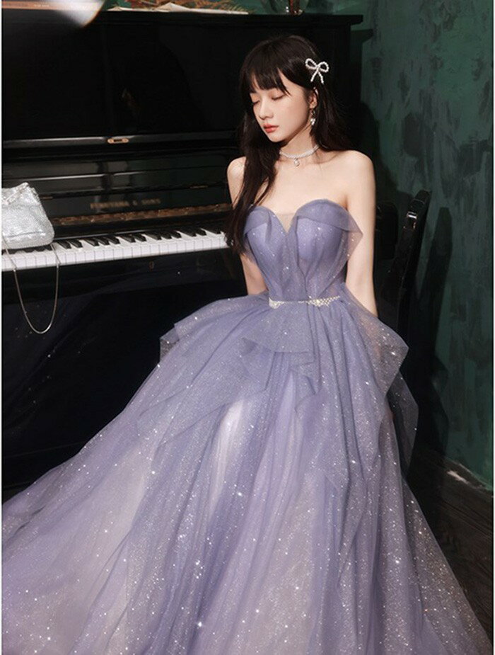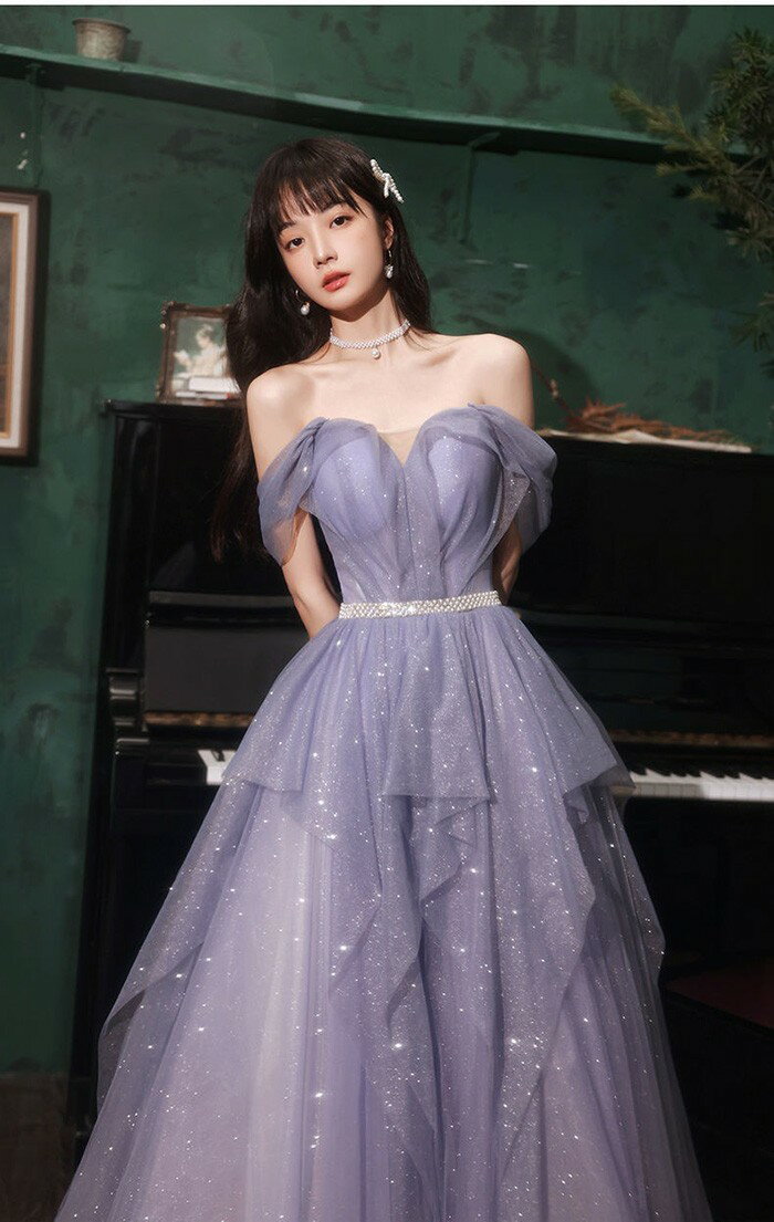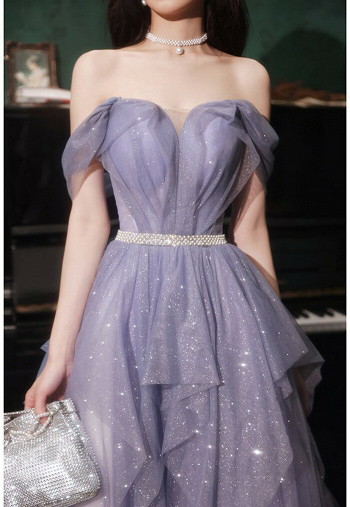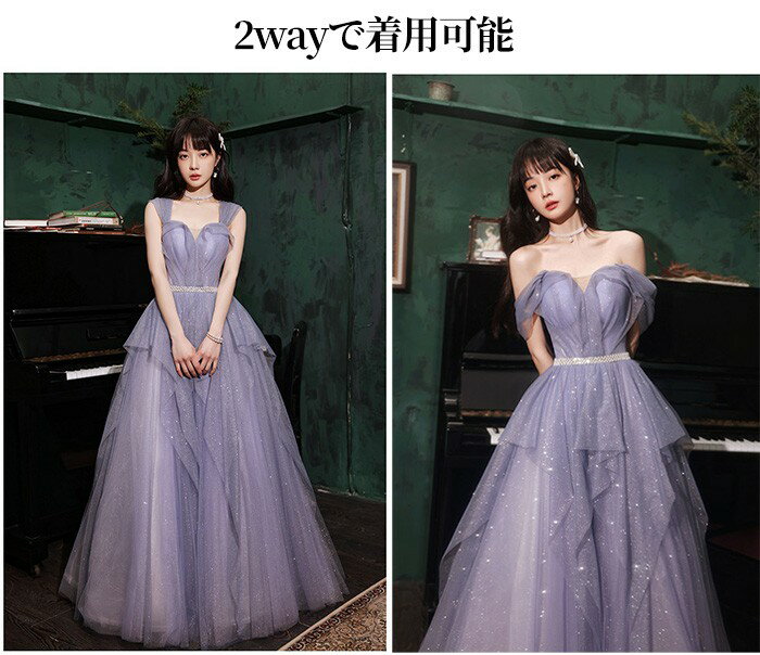 ★500円OFFクーポン配布中★パーテイードレス ロング丈ドレス レディース オフショルダー 肩出し 2way キラキラ 着痩せ 発表会 演奏会 二次会 大きいサイズ エレガント 20代 30代 40代 大人 可愛い 結婚式 披露宴 フォーマルドレス パープル
