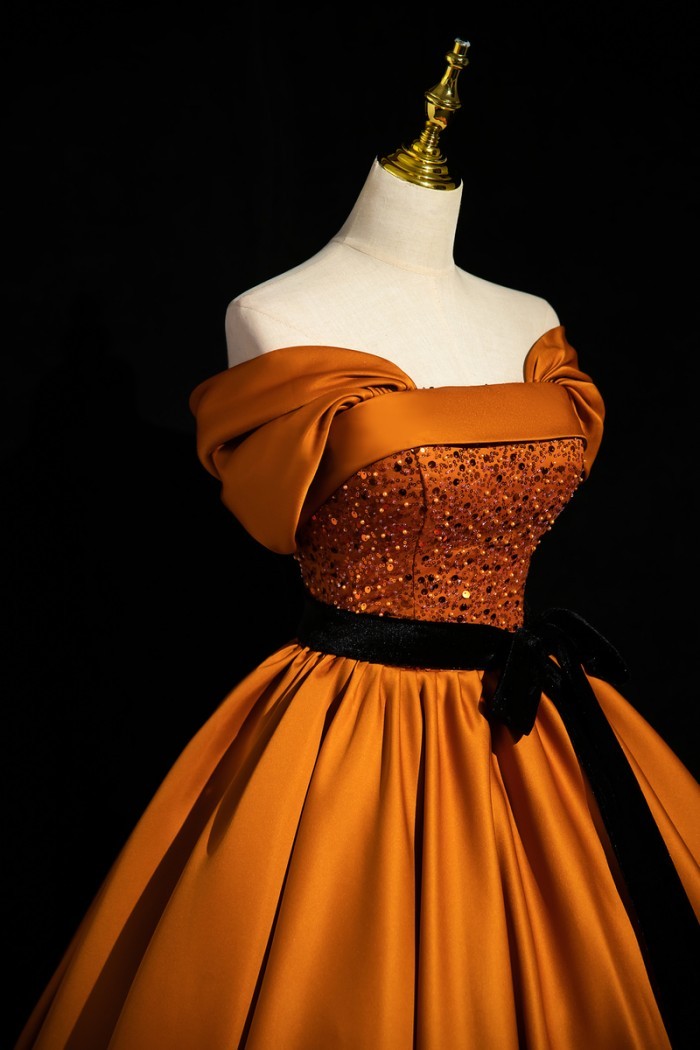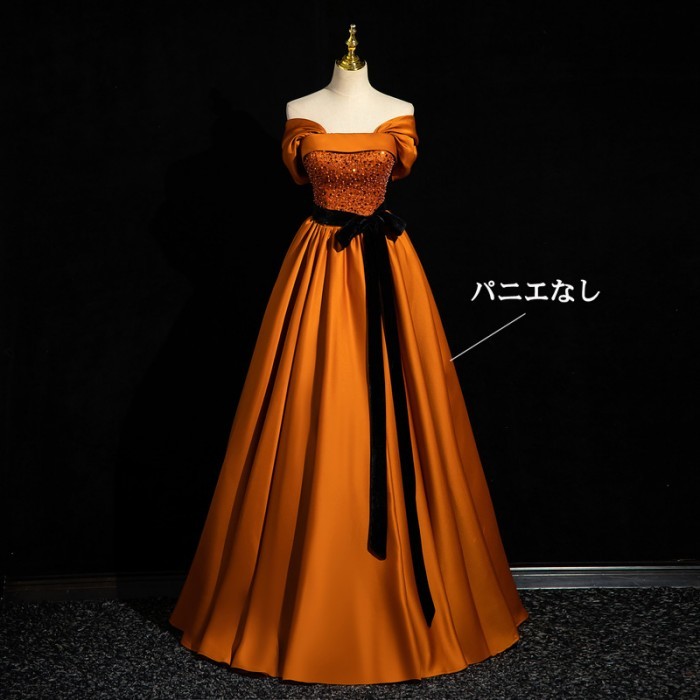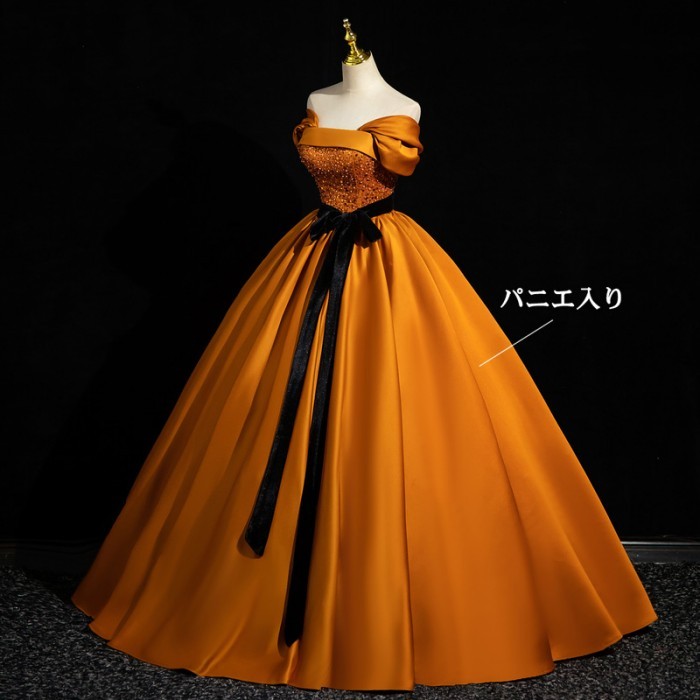 ★500円OFFクーポン配布中★カラードレス お色直し オレンジ 結婚式 ロングドレス 半袖付き オフショルダー パーティードレス フォト婚 ピアノ発表会 イブニングドレス バックレスドレス 編み上げ プリンセスライン 透け感 イベント 演出 舞台 ステージ 衣装 S M L XL 2XL