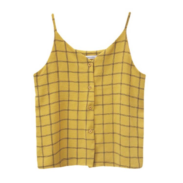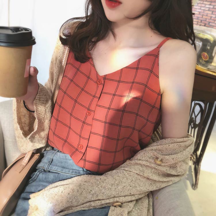 送料無料 チェック柄 タンクトップ レディース インナー キャミソール トップス ノースリーブ シフォン シャツブラウス Vネック 美デコルテ ボタン ショート丈 薄手 ベーシック 大人 可愛い お洒落 カラバリ カジュアル 春 夏