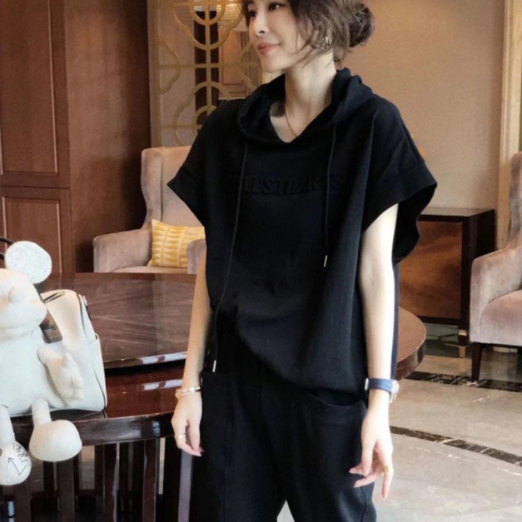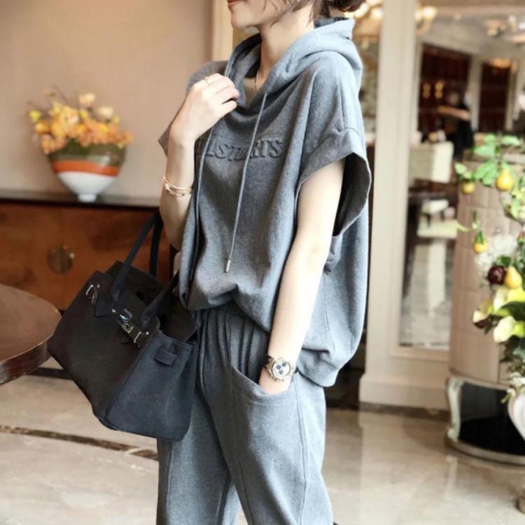 半袖パーカー ジョガーパンツ 上下セット 送料無料 プルオーバーパーカー セットアップ スウェット レディース イージーパンツ フード付き ゆったり トップス ジャージー カジュアル リラックス ルームウェア 部屋着 ゆったり 春夏 グレー ブラック