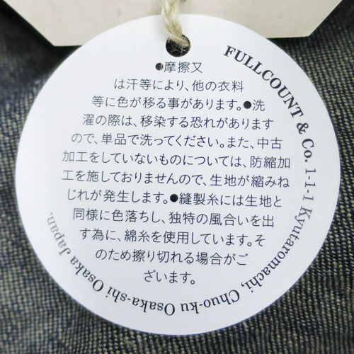 【神戸 正規販売店】 FULL COUNT [ フルカウント ] [ #2015-1 ] Denim Chore Jacket( デニムチョアジャケット )10.5oz【INDIGO】メンズ Made in Japan