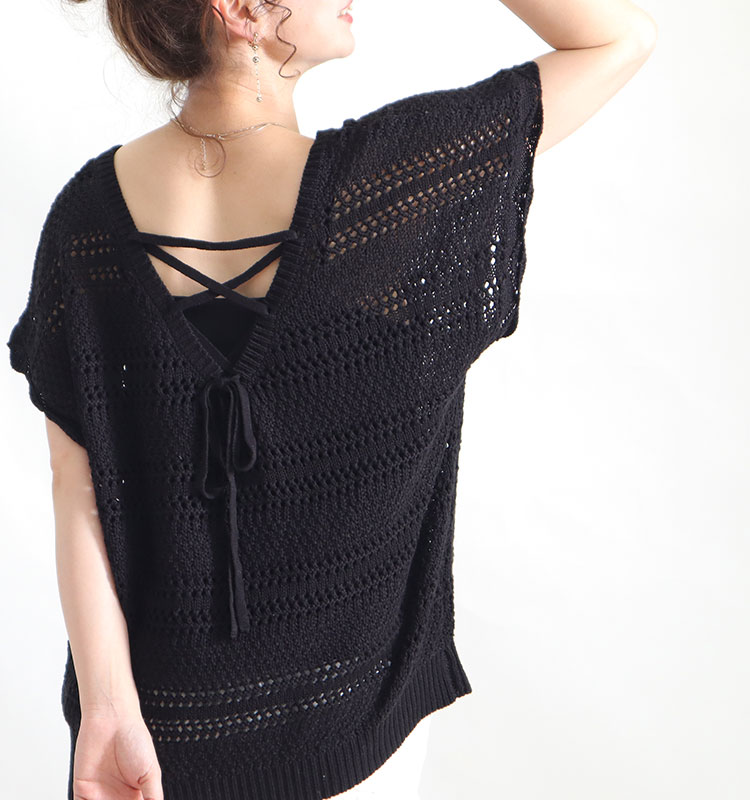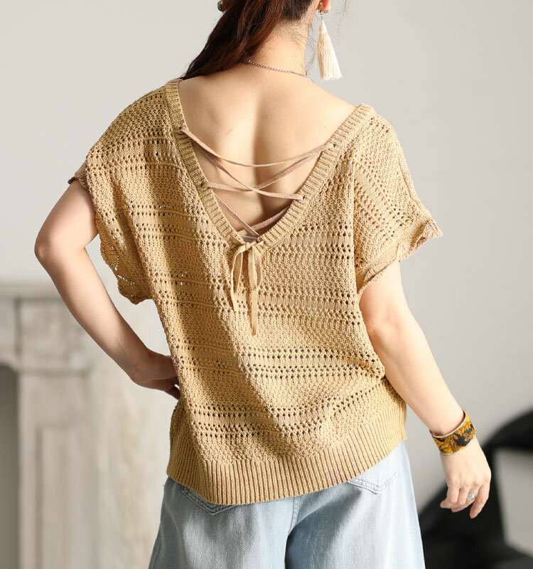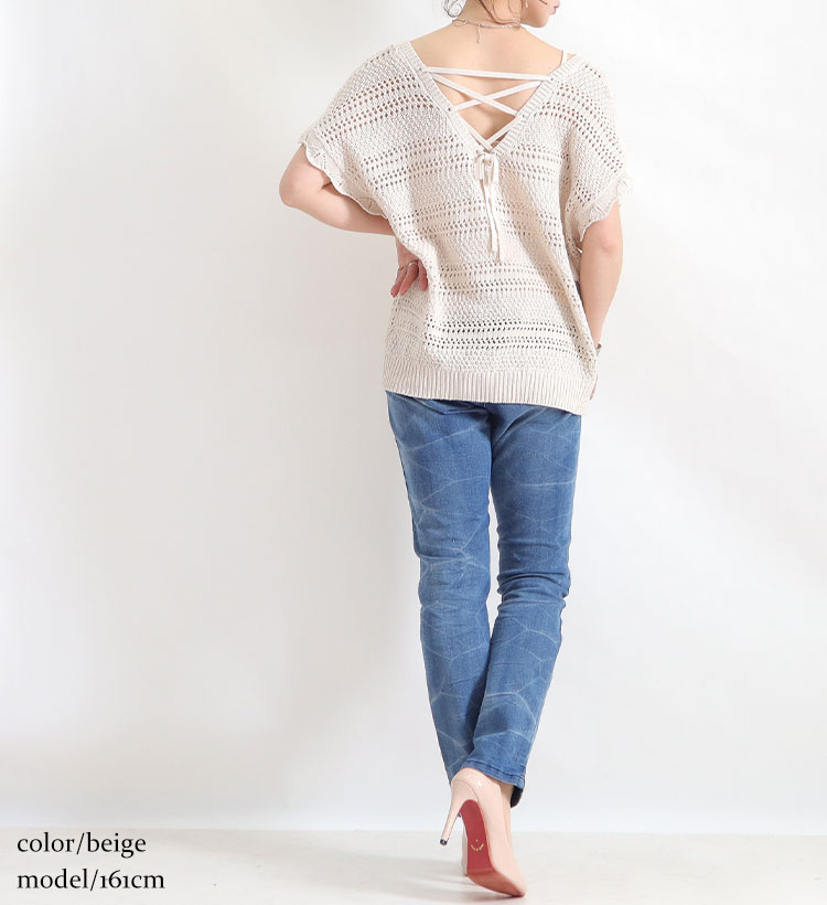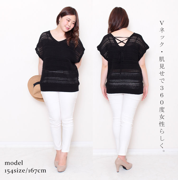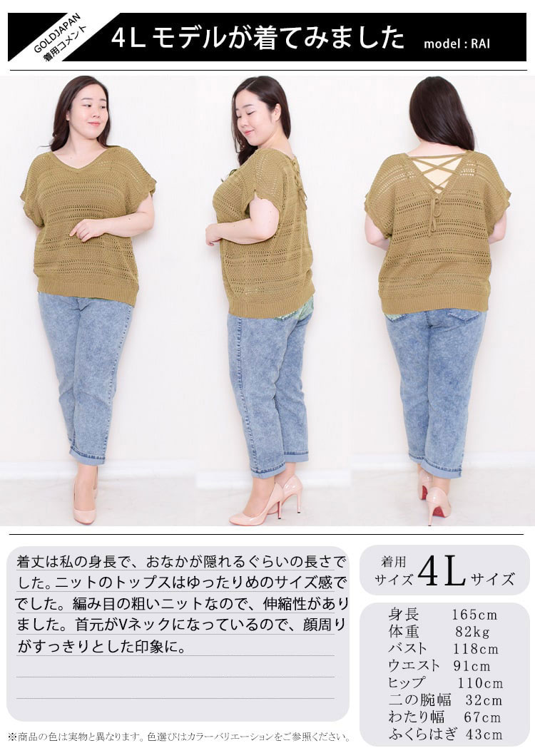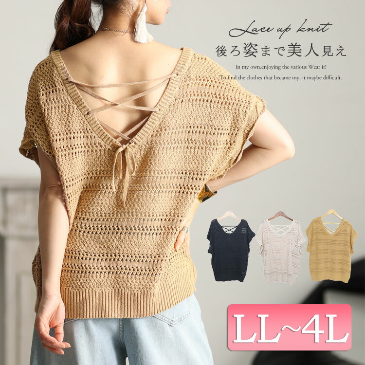 大きいサイズレディース トップス アンサンブル レースアップVネックニットトップス セット 2点セット 半袖 サマーニット ニット レースアップ Vネック キャミソール バックシャン レイヤード 夏新作 春服 夏服 LL 2L 3L 4L ベージュ モカ ブラック 黒 ゴールドジャパン