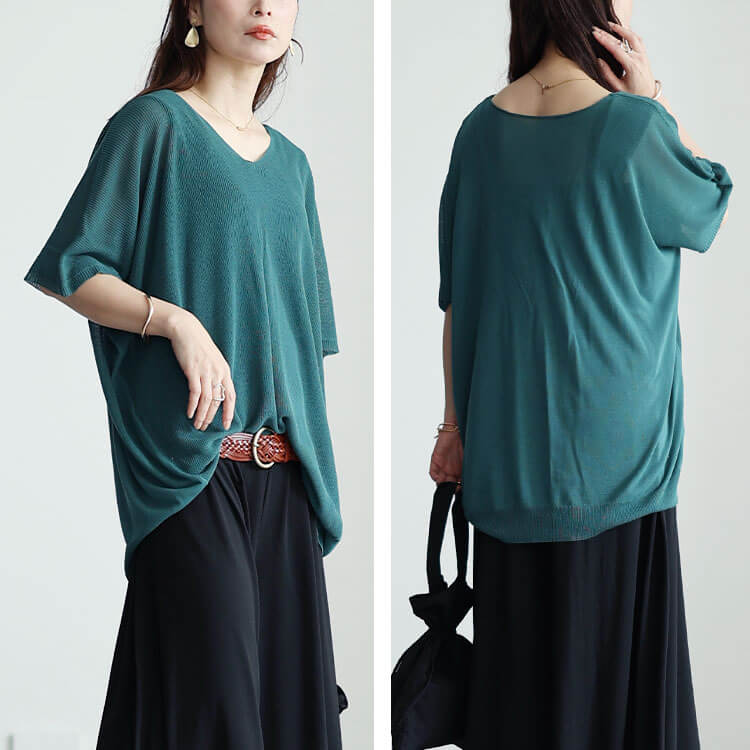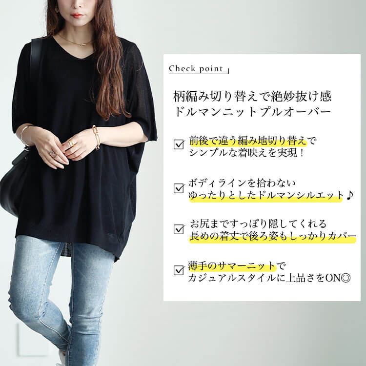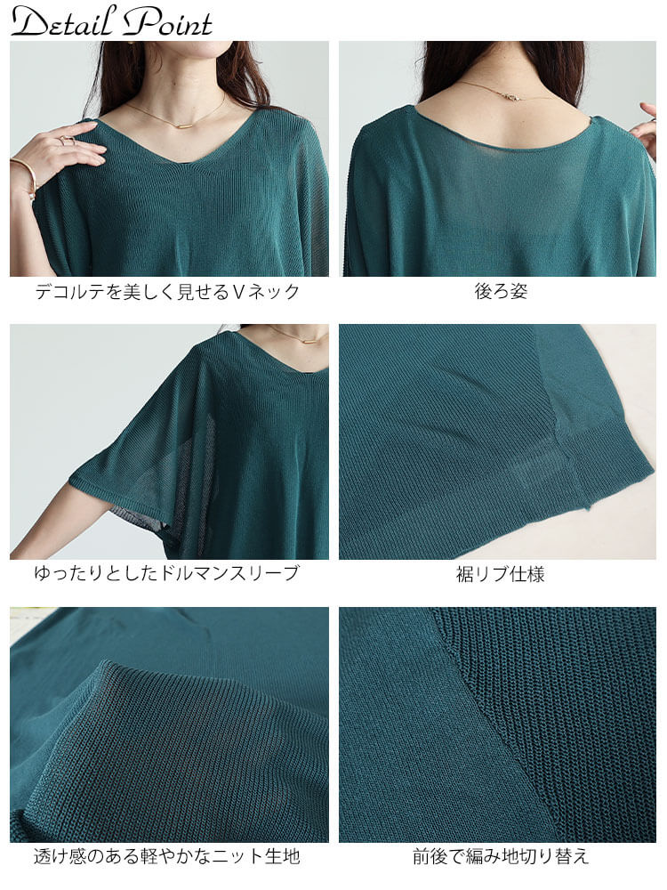 大きいサイズレディース トップス ニット 編み切り替えドルマンニットプルオーバー サマーニット ドルマンニット 半袖 5分袖 ドルマン 切り替え シアー 透け感 Vネック 無地 夏新作 夏服 春服 秋服 LL 2L 3L 4L 5L ブラック 黒 ダークグリーン ラベンダー ゴールドジャパン