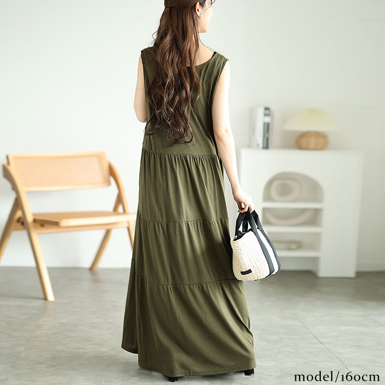 大きいサイズレディース ワンピース Vネックノースリーブティアードワンピース ワンピ ロングワンピース ロング マキシ ノースリーブ ティアード フレア 袖なし Vネック ストレッチ 伸縮 夏新作 夏服 春服 秋 LL 2L 3L 4L 5L ブラック 黒 ネイビー カーキ ゴールドジャパン