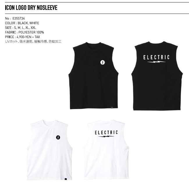 ドライタンクトップ ELECTRIC エレクトリック ICON LOGO DRY NO SLEEVE UVカット 吸収速乾 接触冷感 防蚊加工 夏
