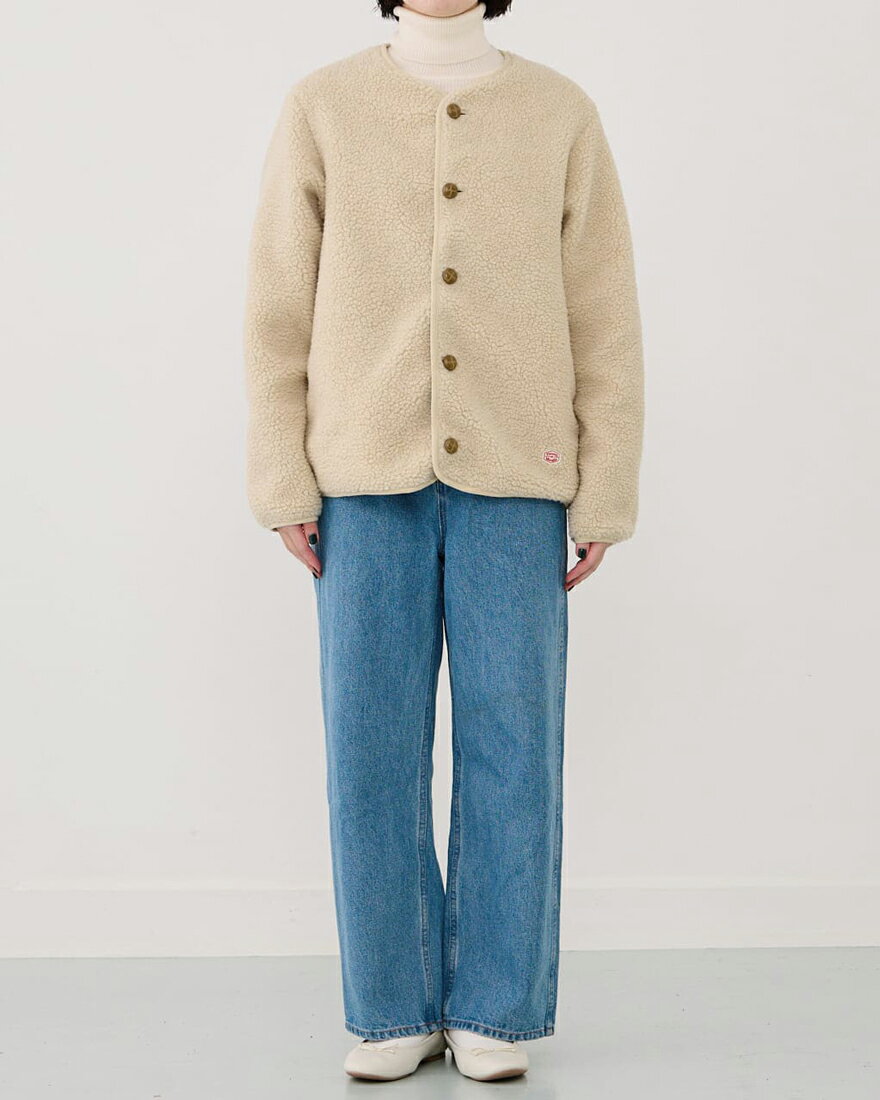 【24FW新作】ヴァンソン エ ミレイユ Vincent et Mireille ノーカラー ボア カーディガン BOA CARDIGAN ユニセックス 裏地付き チェック柄 くるみボタン ワンポイント ロゴ ライト アウター ベージュ ブラウン グレー ブラック VM242BL25030 [ 2024 FW 春 秋 冬 ]