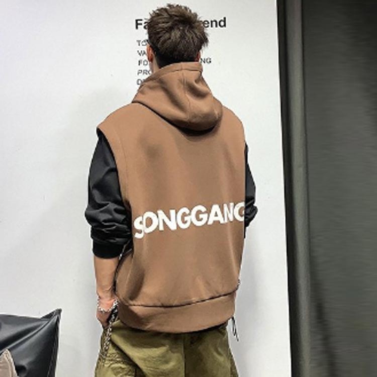 ジップアップ 無地 ノースリーブ メンズ パーカー カーディガン ベスト スウェット 重ね着 前開き 羽織り トップス レイヤード 大きいサイズ 重ね着 お洒落 スウェット アウター ジレ カジュアル 体型カバー フード付き