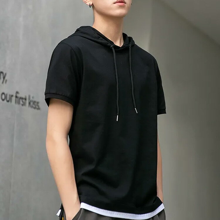 トップス tシャツ メンズ プルオーバー 送料無料 フード付き 無地 スウェット プルオーバー シンプル パーカー 薄手 4色展開 夏服 おしゃれ カジュアル ルームウェア 半袖パーカー