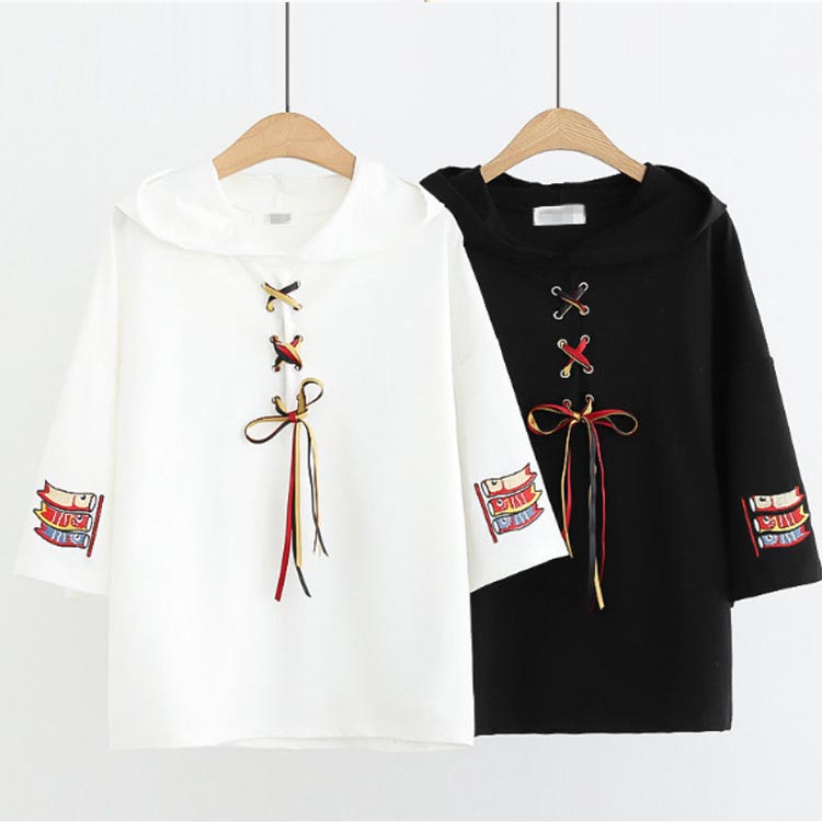 夏 パーカー レディース フード付き カットソー 半袖パーカー 五分袖 トップス おしゃれ 送料無料 ゆったり カジュアル 大きいサイズ シンプル Tシャツ