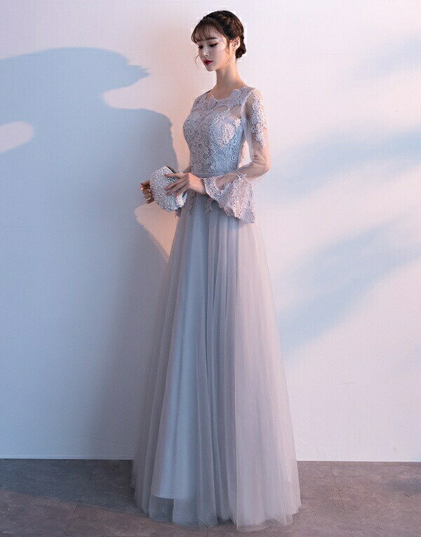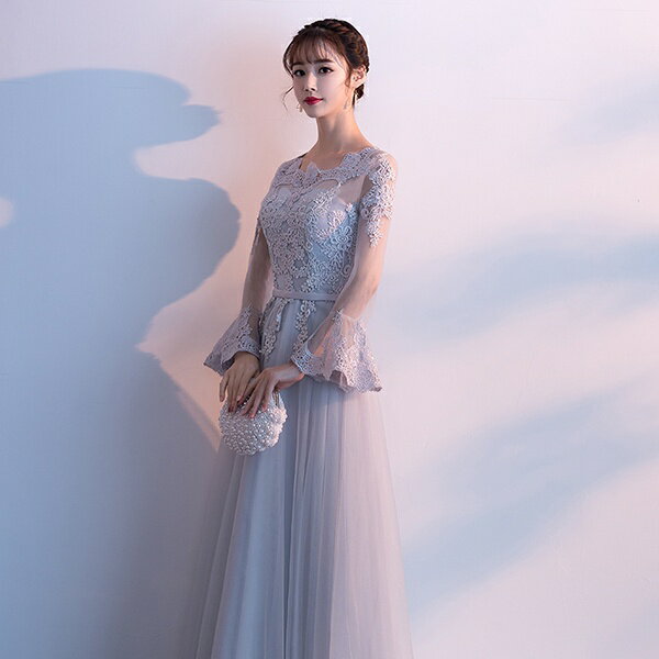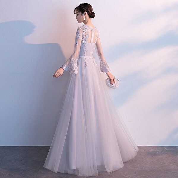 ドレス 大人 ピアノ 発表会 ロングドレス 演奏会 結婚式 母親 合唱ドレス フェミニン 袖付き ドレス ピンク グレー ワインレッド 袖あり 大きいサイズ 上品 フレア袖 長袖 レース 透け感 ミモレ丈 音楽会 パーティー 高校生 フォーマル ドレス S M L LL 3L 4L