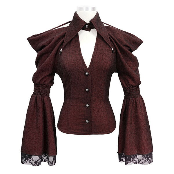 中世 17世紀 ヴィンテージ トップス ブラウス ゴスロリ 長袖 肩出し セクシー ラッパの袖 シャツ 上着 ゴシック風 貴族風 ワインレッド ハロウィン 学園祭 文化祭 パーティー 演奏会 演劇 貴族服 かっこいい d9329c0x0zo