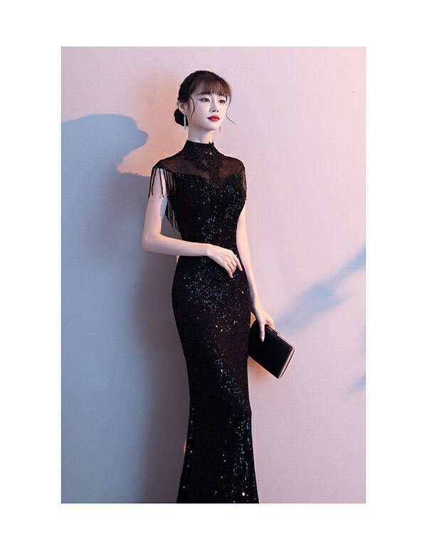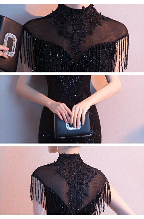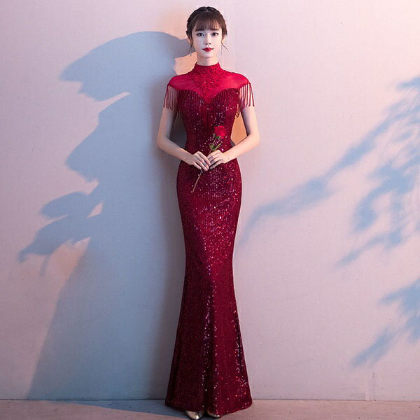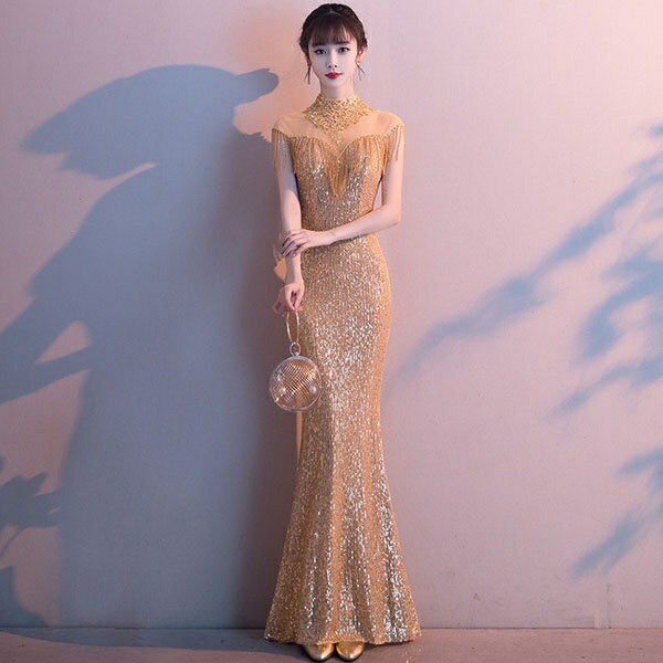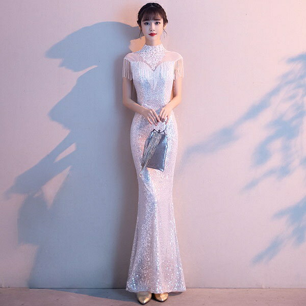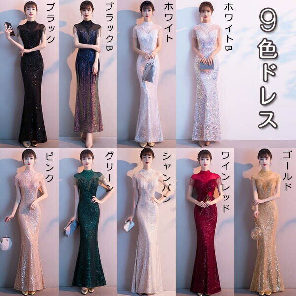 ドレス 大人 ピアノ 発表会 ロングドレス 演奏会 マーメイドドレス フリンジ袖 キラキラ スタンドカラー ハイネック 秋冬 上品 マーメイドスカート 透け感 母親 結婚式 体型カバー 謝恩会 卒業式 花嫁 合唱団 ホワイト ピンク レッド ブラック 20代 30代 40代