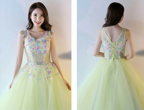 ドレス ロングドレス カラードレス ウェディングドレス ピアノ 発表会 袖なし ノースリーブ ラウンドネック 花柄 花飾り 大きいサイズ 成人式 大人 ステージ衣装 大きいサイズ 舞台衣装 コンサート イエロー パープル da092g4g4jc