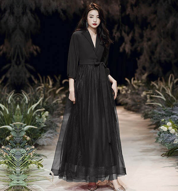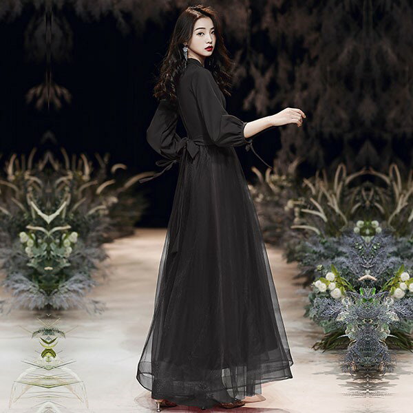 パーティードレス ロング 演奏会 袖付き ドレス 大きいサイズ 7L ぽっちゃり ブラック 黒 半袖 長袖 成人式 同窓会 大人 秋冬 ピアノ 発表会 秋 冬 Aライン 結婚式 ステージドレス 二次会 母親 ウエディング ハワイ ワンピース 上品 20代 30代 40代 da103n1n1jc
