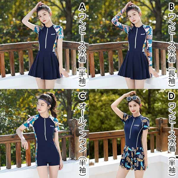 フィットネス 水着 ぽっちゃり プリント レディース フィットネス水着 大きいサイズ 体型カバー 水陸両用 セパレート 女性 サーフィン 韓国 可愛い 半袖 長袖 オールインワン スポーティ カジュアル ワンピース水着 海 ビーチ スポーツジム ママ サーフィン
