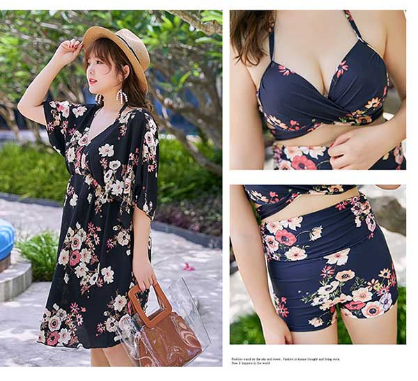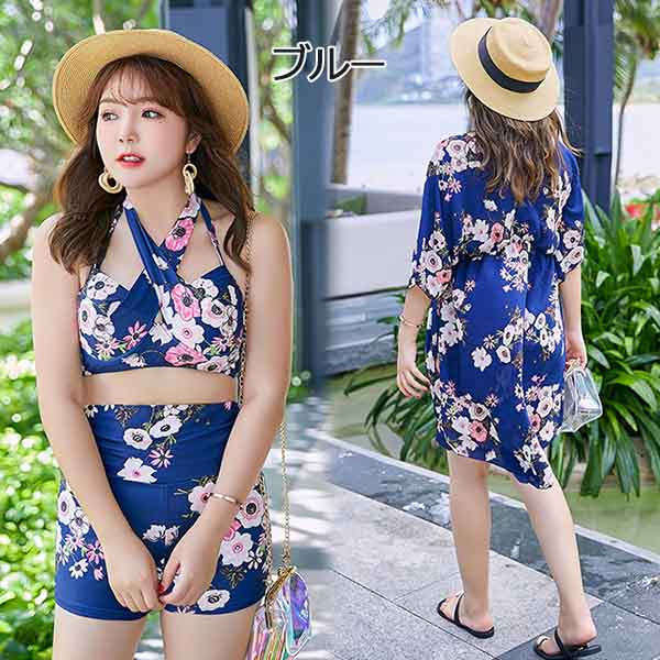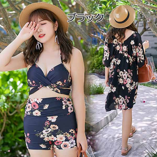 大きいサイズ 水着 体型カバー レディース ぽっちゃり 長袖ラッシュガード 3点セット ブラック ブルー ボーイレッグ ビキニ 11号 13号 15号 17号 温泉 ビーチ かわいい セクシー 韓国風 大人 女性用 20代 30代 40代 50代 オトナ女子 脚 二の腕 太もも お尻 お腹 カバーアップ