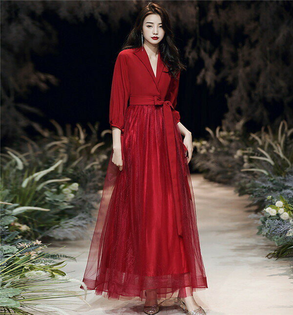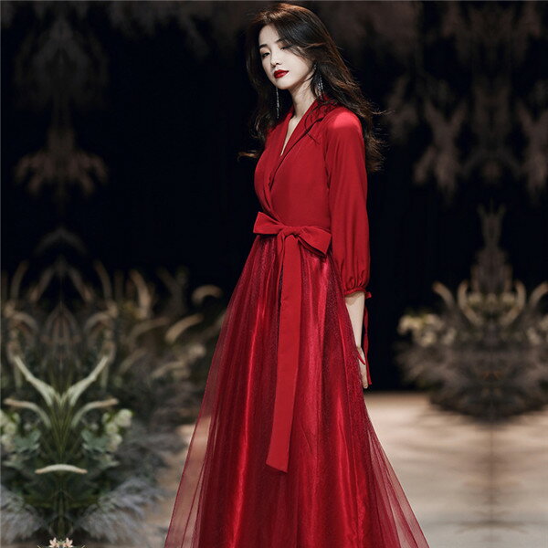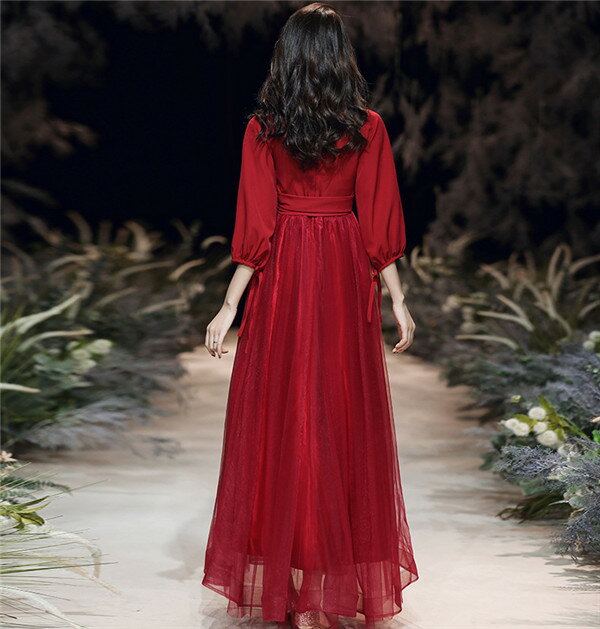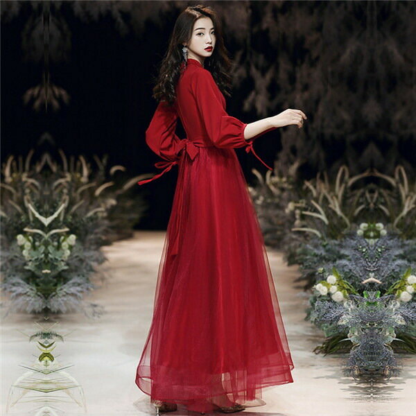 ロングドレス ワンピース 赤 レッド レディース ドレス 長袖 大人 ピアノ 発表会 パーティードレス フォーマル 結婚式 成人式 演奏会用ドレス 20代 30代 春 夏 同窓会 ロング きれいめ ゆったり da381g4g4jc