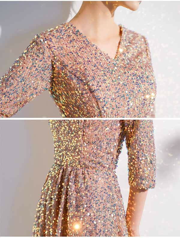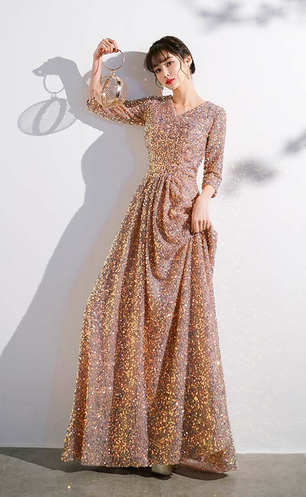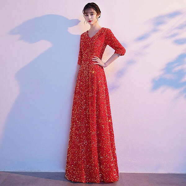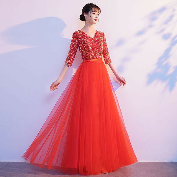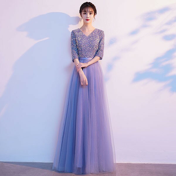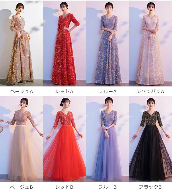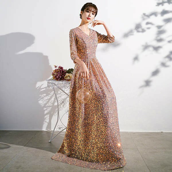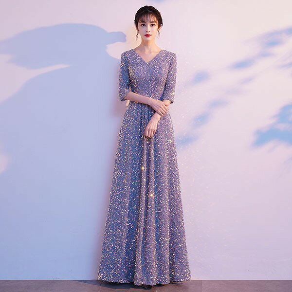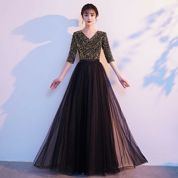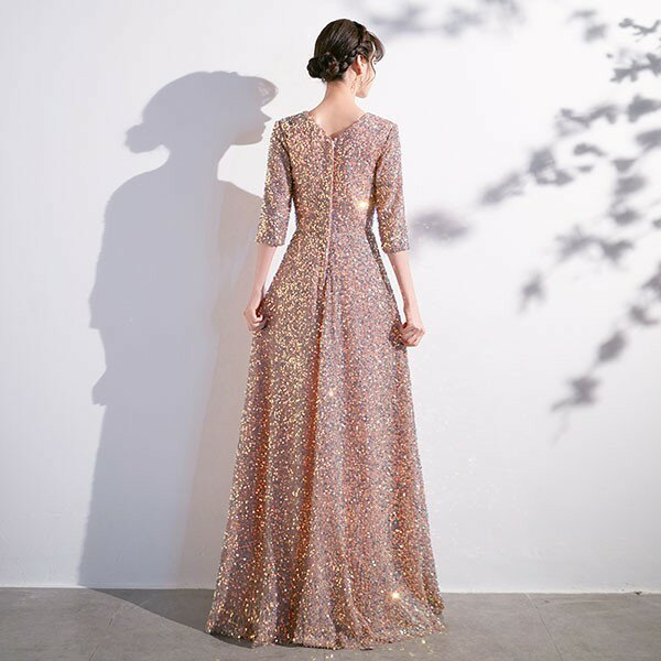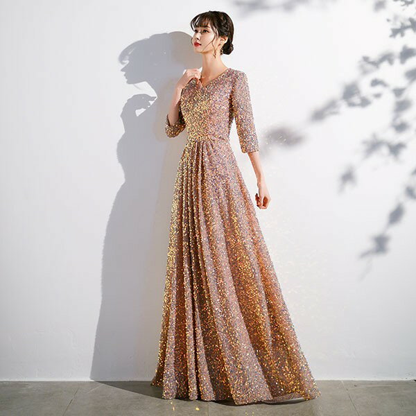 ドレス 大人 ピアノ 発表会 ロングドレス 演奏会 結婚式 母親 ピアノ発表会 袖付き キラキラ ワンピース 五分袖 演奏会ドレス 演奏会用ドレス パーティードレス イブニングドレス ロング丈 大きいサイズ フォーマル da250n1n1ze