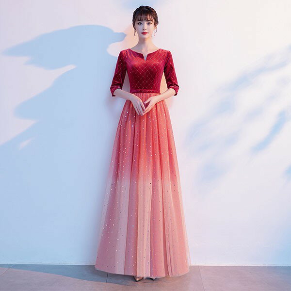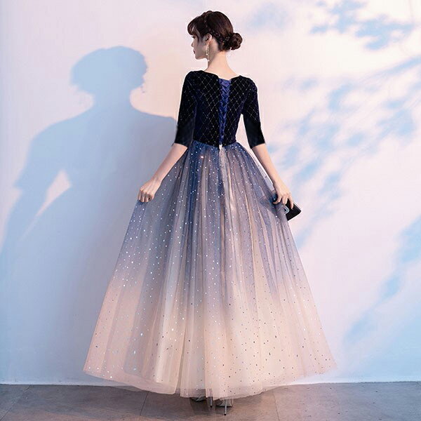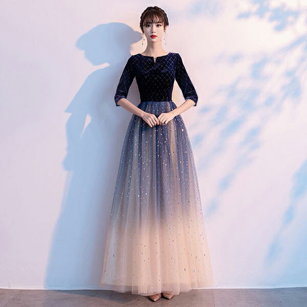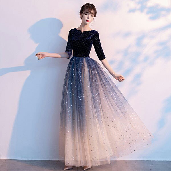 ドレス 大人 ピアノ 発表会 ロングドレス 演奏会 結婚式 母親 ドレス ピアノ発表会 黒 袖付き グラデーション ワンピース 半袖 演奏会ドレス 演奏会用ドレス パーティードレス イブニングドレス ロング丈 大きいサイズ 小さいサイズ フォーマル da247n1n1ze