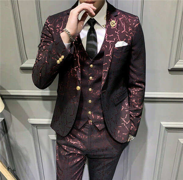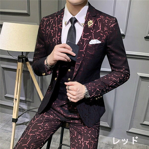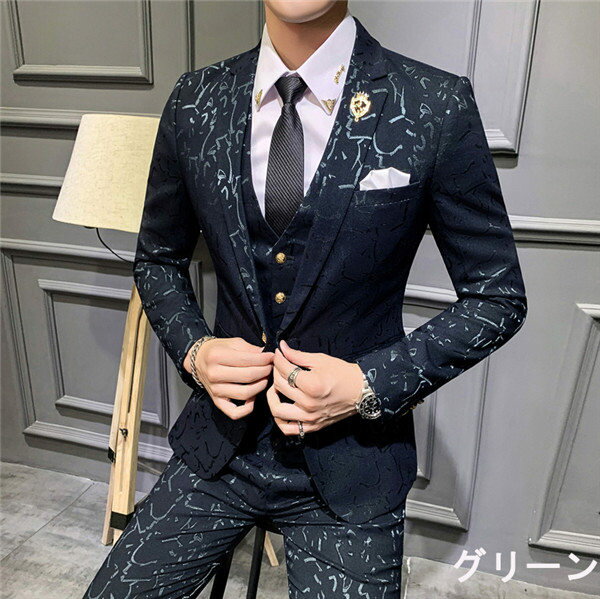 スーツ メンズ 1ボタン スリムスーツ ステージ衣装 カラオケ 大会 ガラスーツ 大きいサイズ シングル 紳士服 ベスト付き 3ピース 細身 結婚式 メンズスーツ お洒落 フォーマル 男性 背広 花婿スーツ 3点セット ネイビー グリーン レッド S M L XL 2XL 3XL dg459d3d3ze
