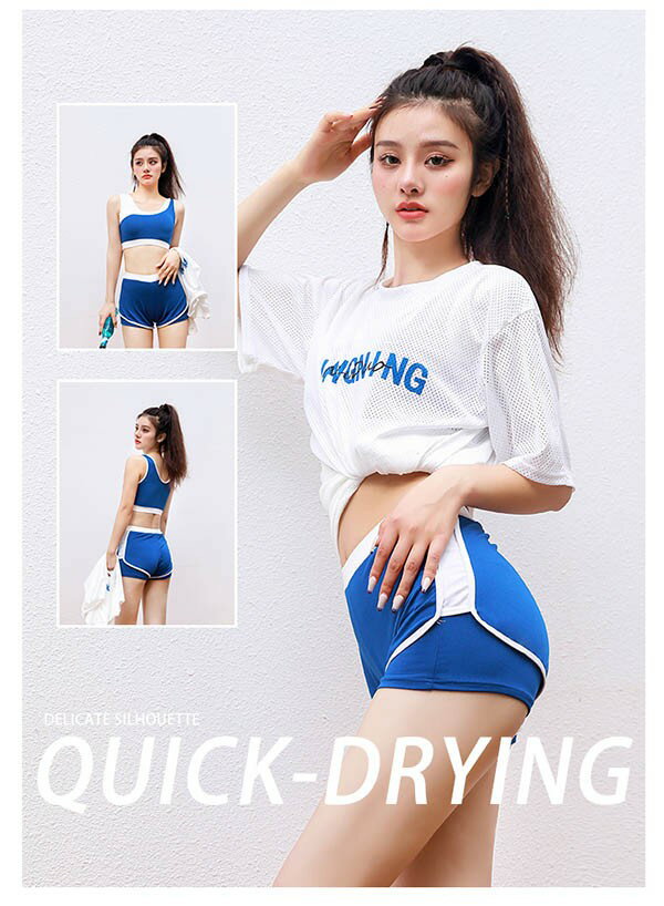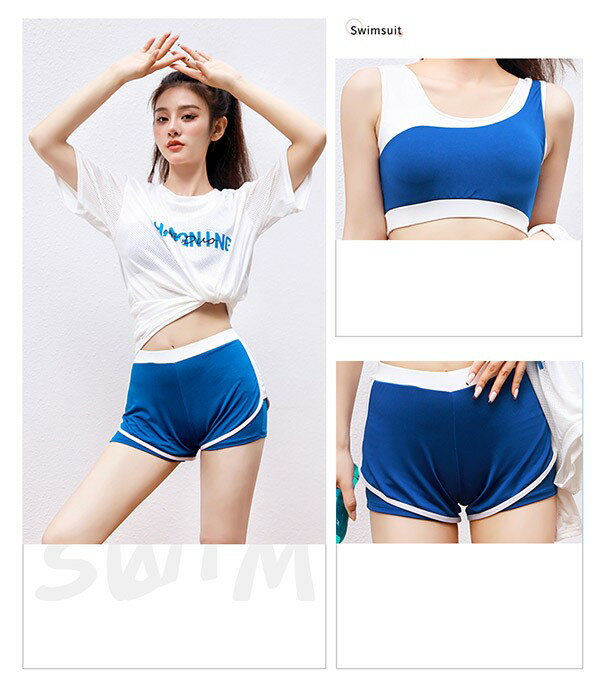 タンキニ 水着 レディース 半袖 大きいサイズ スポーツブラ ショートパンツ ハイウエスト ボーイレッグ ワイヤーなし パッド付 体型カバー セパレート 海 プール リゾート おしゃれ ぽっちゃり 韓国風 大人 女性用 ジュニア df147x1x1ze