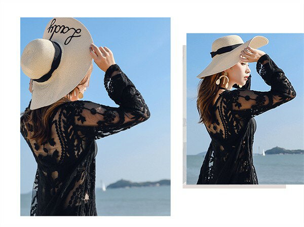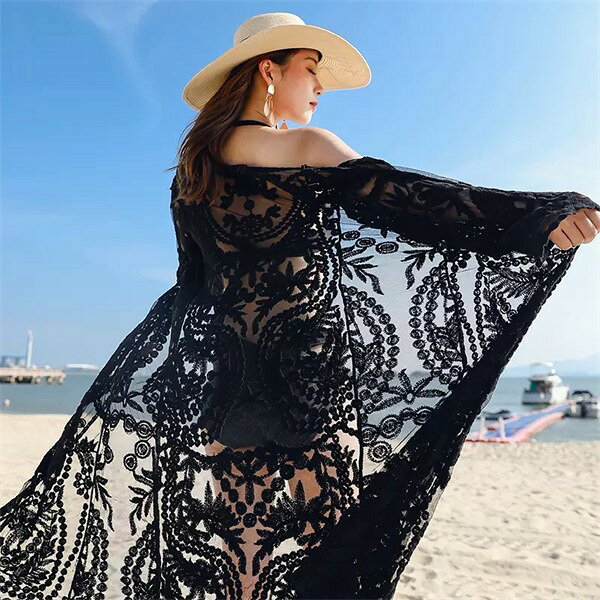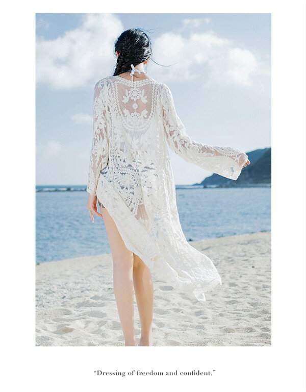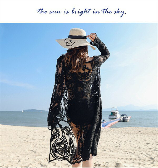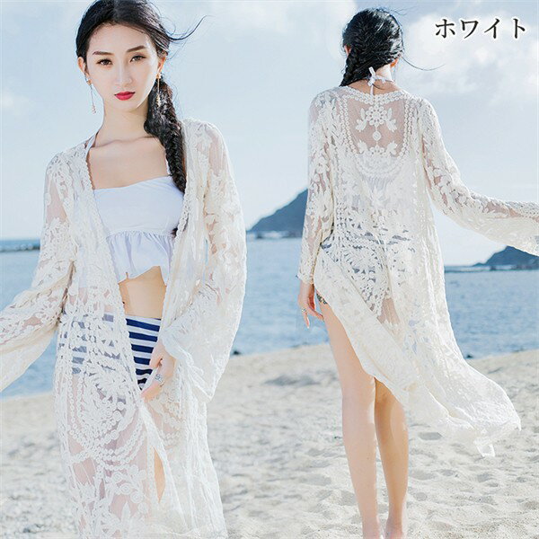 水着の上に着る ガウン ロング ロングガウン ノーボタン レース カーディガン レディース おしゃれ トップス 大人 女性 海 プール ビーチ シアートップス 春 夏 薄手 ホワイト ブラック 透け感 シースルー 長袖 デート 清楚 羽織 お呼ばれ 体型カバー ゆったり