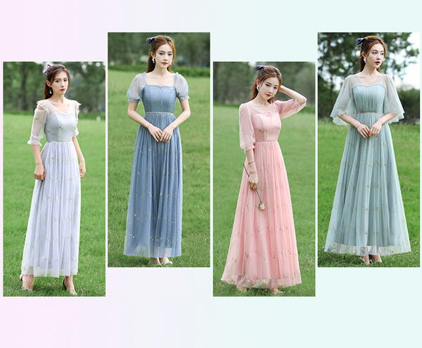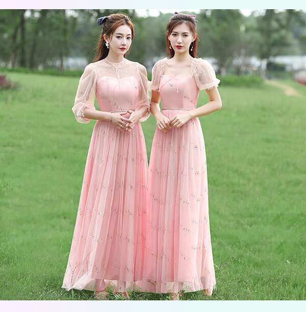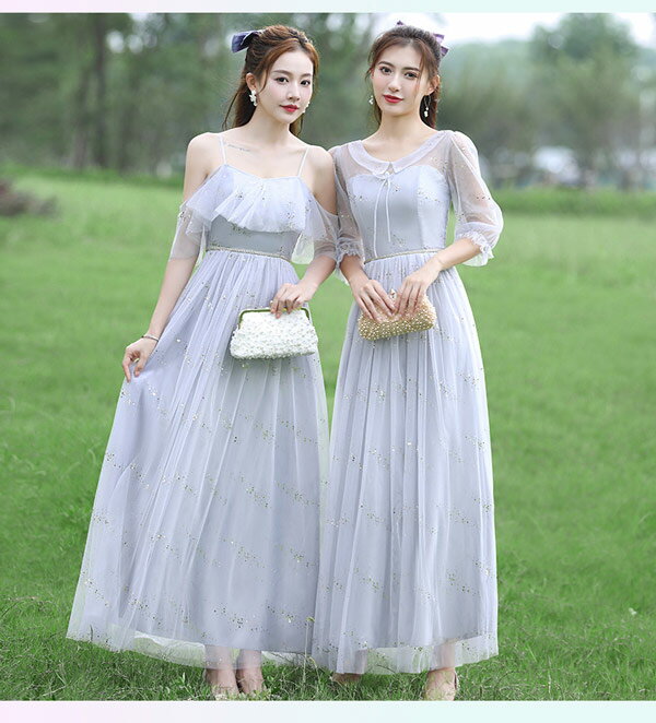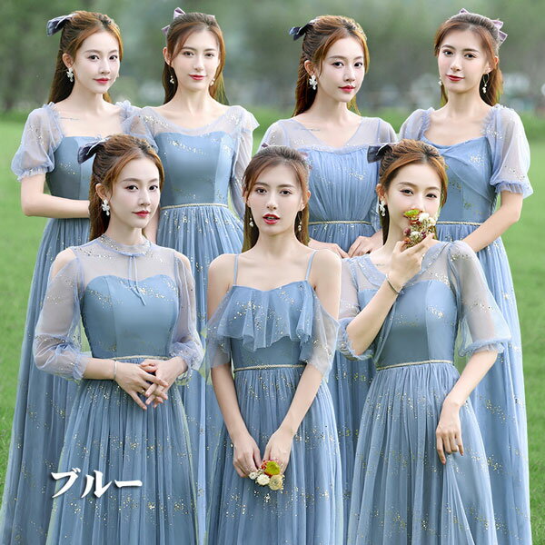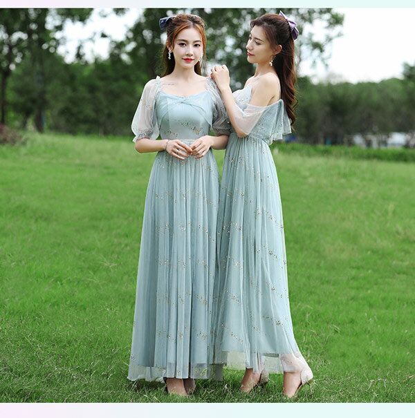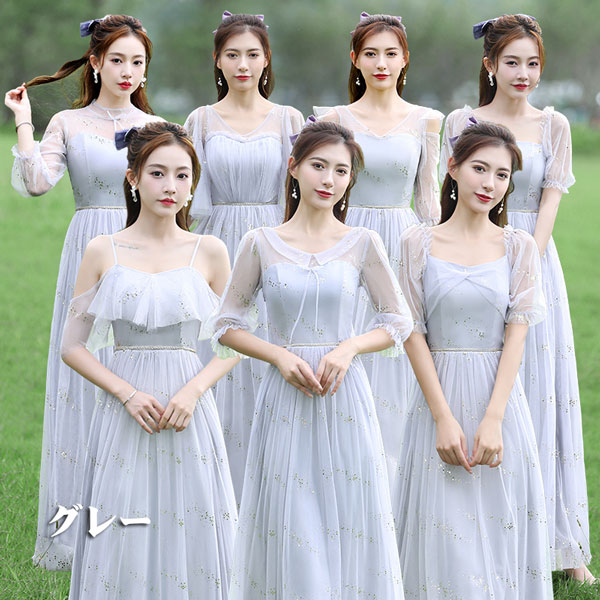 パーティードレス お揃いドレス ブライズメイド服 花嫁 ウェディング ピンク グリーン グレー 介添えドレス Aライン ロングドレス プリンセスドレス 結婚式