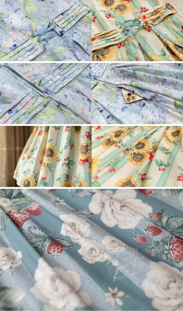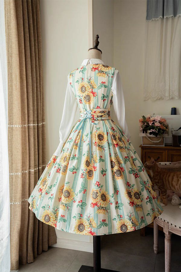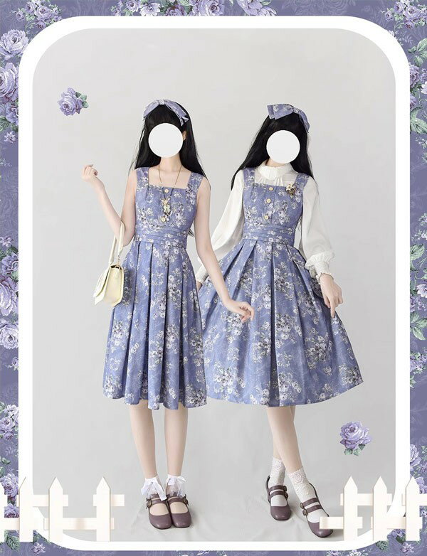 ロリータ ワンピース 花柄 レディース ゴスロリ ミモレ丈 クラロリ リボン 冬服 Aライン ハイウエスト ロリィタファッション レトロ風 秋冬 パーティ イベント 大きいサイズ ブルー パープル グリーン イエロー S M L XL 2XL