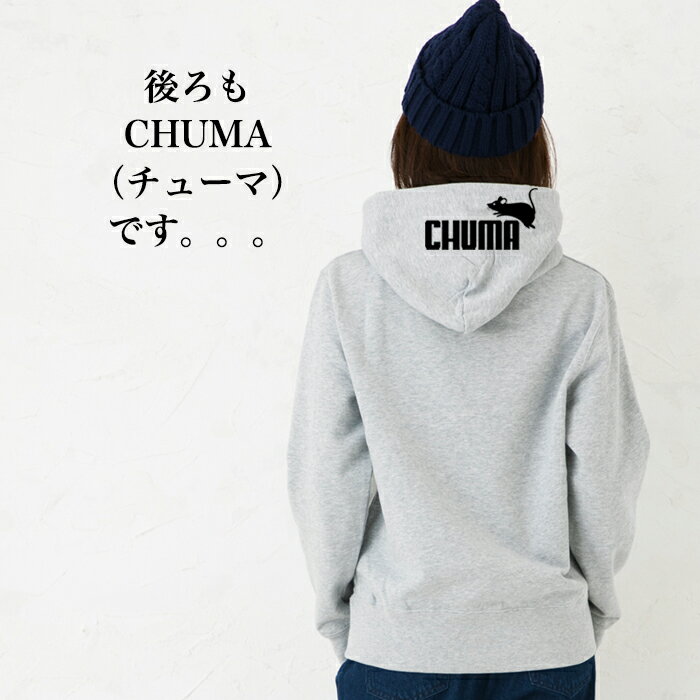 \お得なクーポン配布中/CHUMA チューマ ねずみ パーカー メンズ レディース ペアルック カップル ユニセックス お揃い 兄弟 友達 男女兼用 長袖 裏毛 スポーツ ブランド パロディ ネズミ 干支 ねずみ年 生まれ 誕生日 おもしろ パロディ