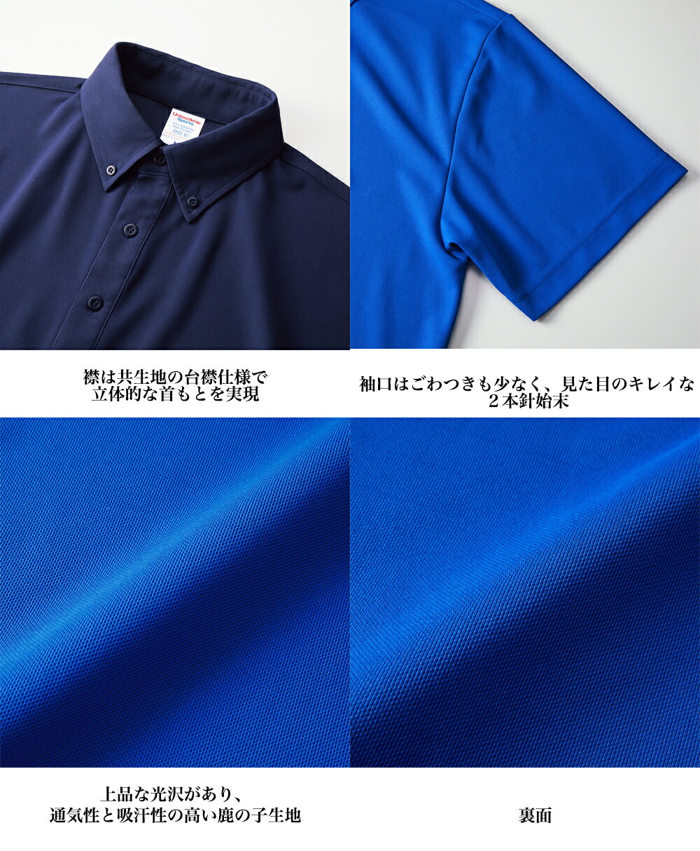 \お得なクーポン配布中/【メール便 送料無料】ポロシャツ ボタンダウン 半袖 無地 吸水速乾 スペシャル ドライ 鹿の子 (かのこ) 4.7オンス メンズ レディース カジュアル スポーツ ユニフォーム イベント ポリエステル ブラック お揃い