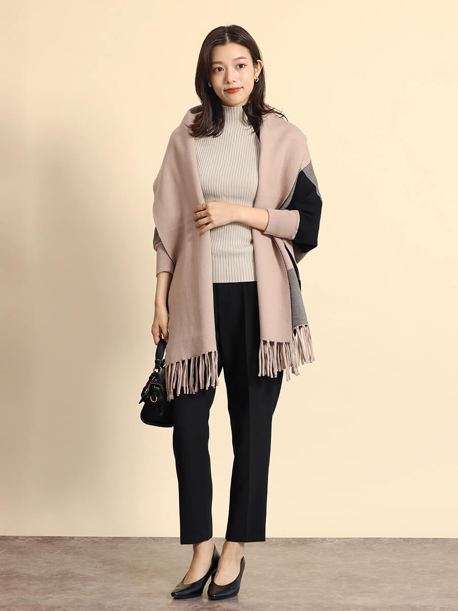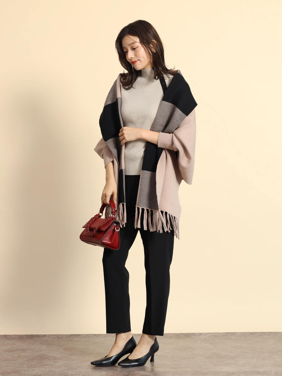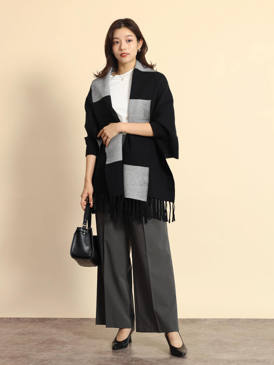 FENNEL フェンネル ブロックチェックリバーシブルショール ショール ニット ニットショール 羽織り チェック柄 無地 リバーシブル仕様 レディース 大人 フェミニン キレイめ 上品 デイリー おでかけ ウォッシャブル