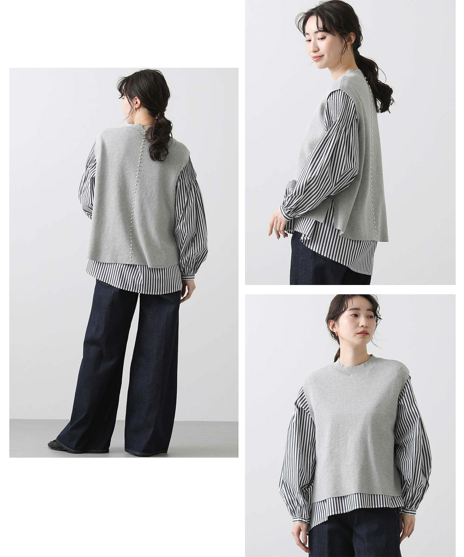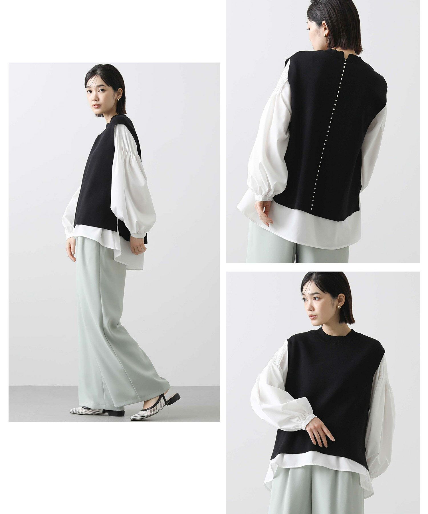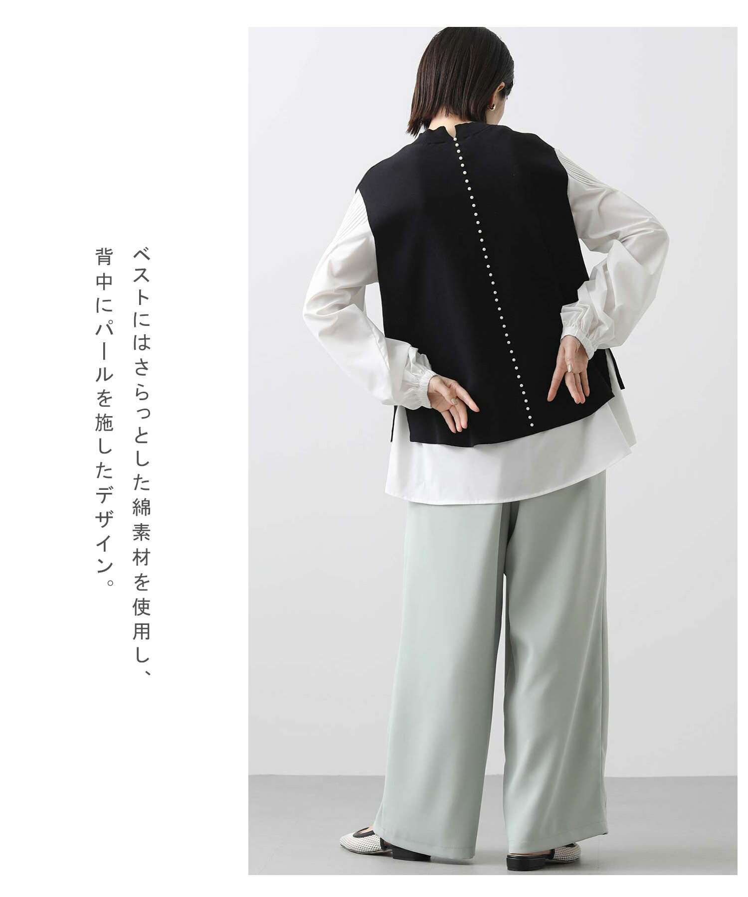 【《期間限定》エントリーでさらに10倍ポイント付与キャンペーン開催中!】バックパールベストブラウスset
