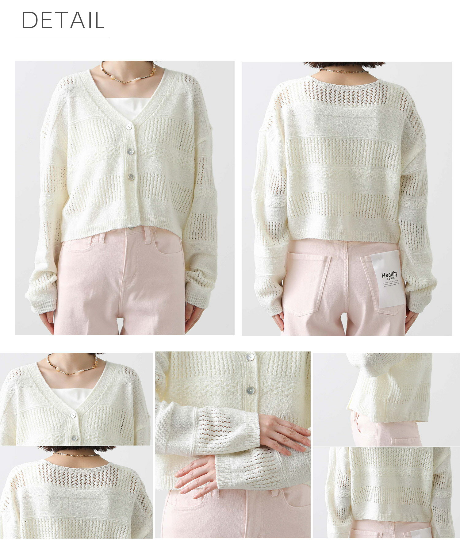 【《4時間限定》最大20%OFFクーポン配布中 & ポイント最大15倍キャンペーン開催『 4/9(水) 20:00〜23:59 』】透かし編ショートカーディガン