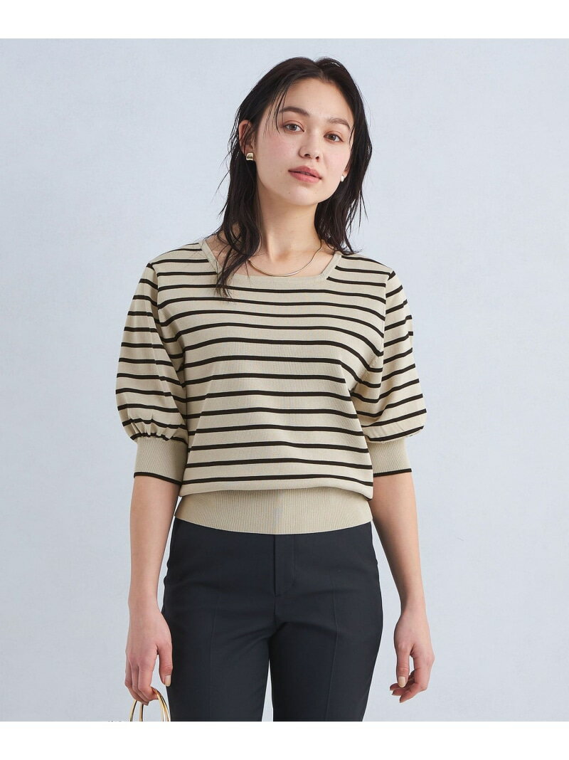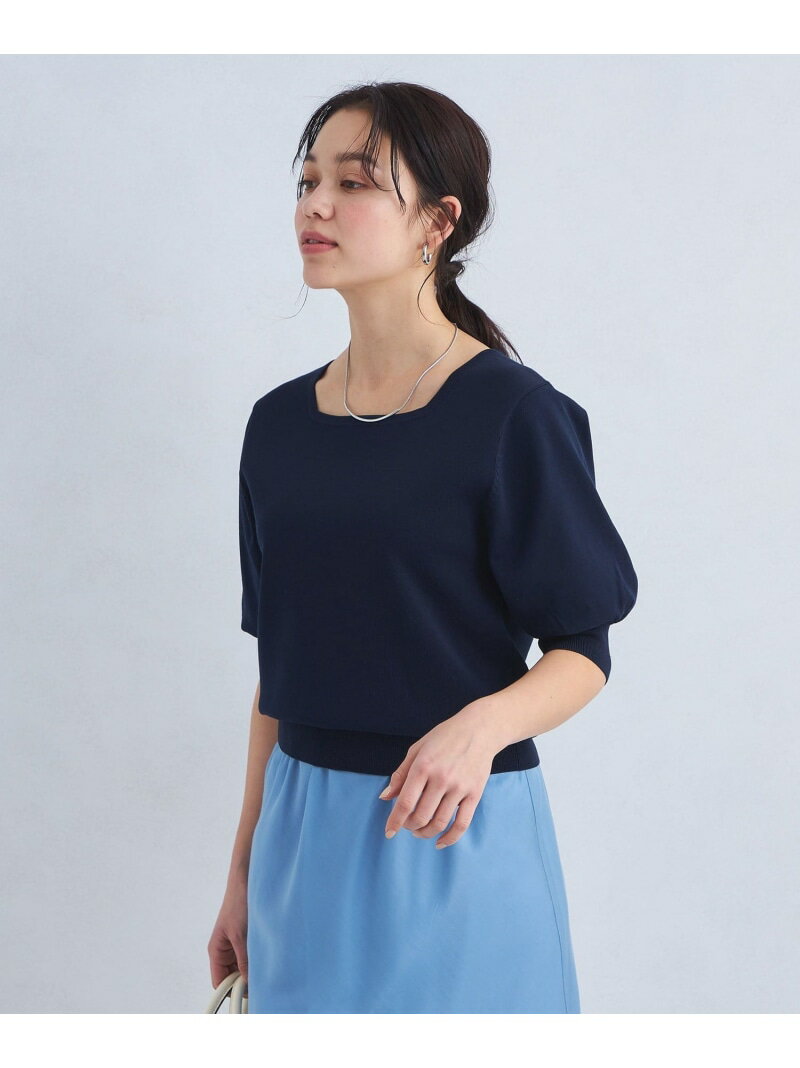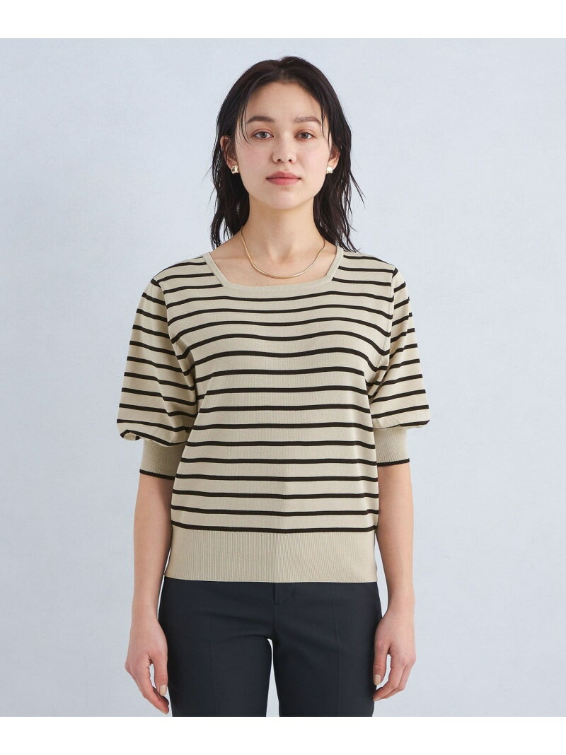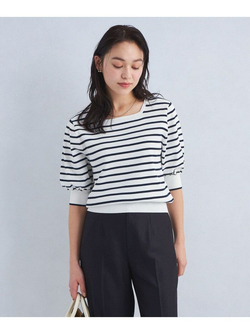 フォルム スリーブ スクエア ネック プルオーバー ニット UNITED ARROWS green label relaxing ユナイテッドアローズ グリーンレーベルリラクシング トップス ニット ネイビー ホワイト【送料無料】[Rakuten Fashion]