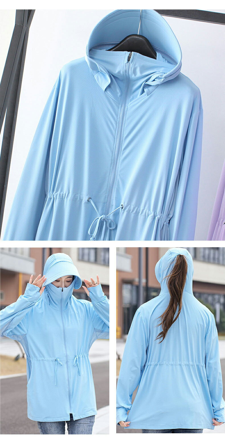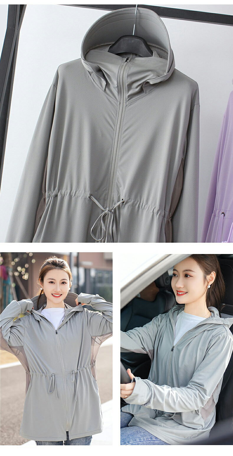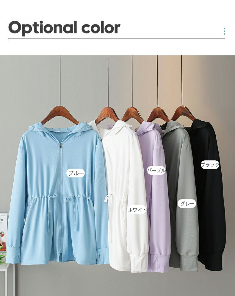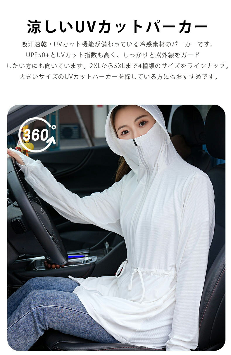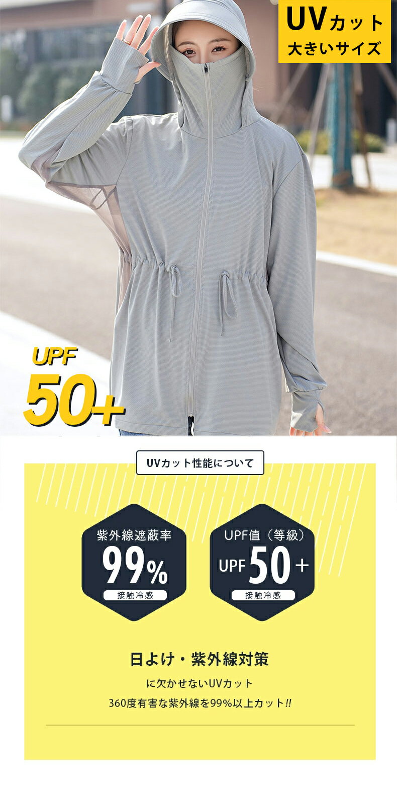 UVパーカー UV UPF50+ UVカット レディース オーバーサイズ 長袖 日焼け止め 涼感 冷感 -5℃ パーカー ギャザー ウエスト リボン 調整可 トップス 体型カバー ビッグシルエット フードジップ アウター 紫外線 日焼け対策 薄手 伸縮性 涼しい 大きいサイ